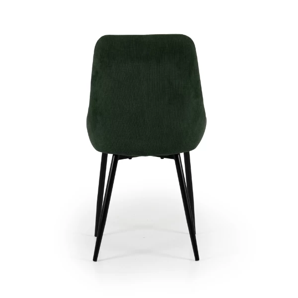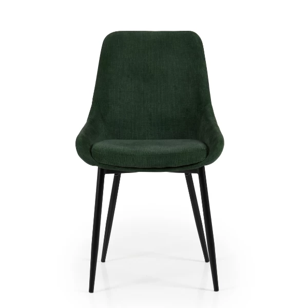 Naast de Alexia-stoelen met een bekleding in velours zijn er ook Alexia-stoelen met een bekleding in ribfluweel. Deze stof won in de jaren 70 snel aan populariteit en geeft je meubels dan ook een retro look. Ribstof is soepel en zacht, maar ook enorm stevig. Ribfluweel is naast waterafstotend ook goed bestand tegen zonlicht. Deze stoel heeft een donkergroene bekleding. Door zijn kleur en zijn zachte stof straalt de Alexia-stoel luxe en harmonie uit.