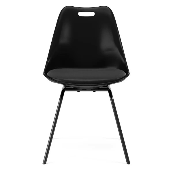 Stoel Brett heeft een simpel, maar tegelijkertijd doeltreffend design. Door zijn kuipvorm en extra zitkussen zit deze stoel namelijk uiterst aangenaam. De kuipvorm zorgt ervoor dat de volledige rug ondersteund wordt, het zitkussen uit kunstleer dat je niet op de harde kunststof moet zitten. Stoel Brett kan door zijn handgreep makkelijk verplaatst worden.