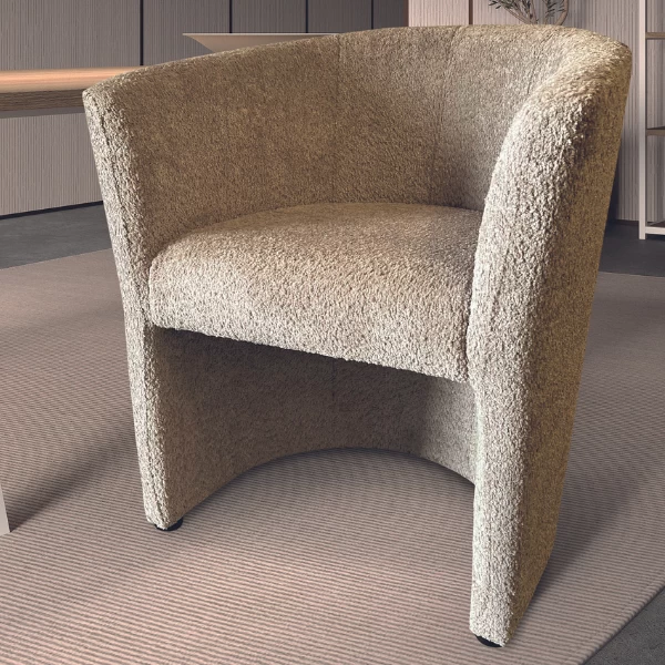 zandkleurige kuipzetel Charlie, structuur: spaanplaat, bekleding: polyester met een afwerking in teddystof.