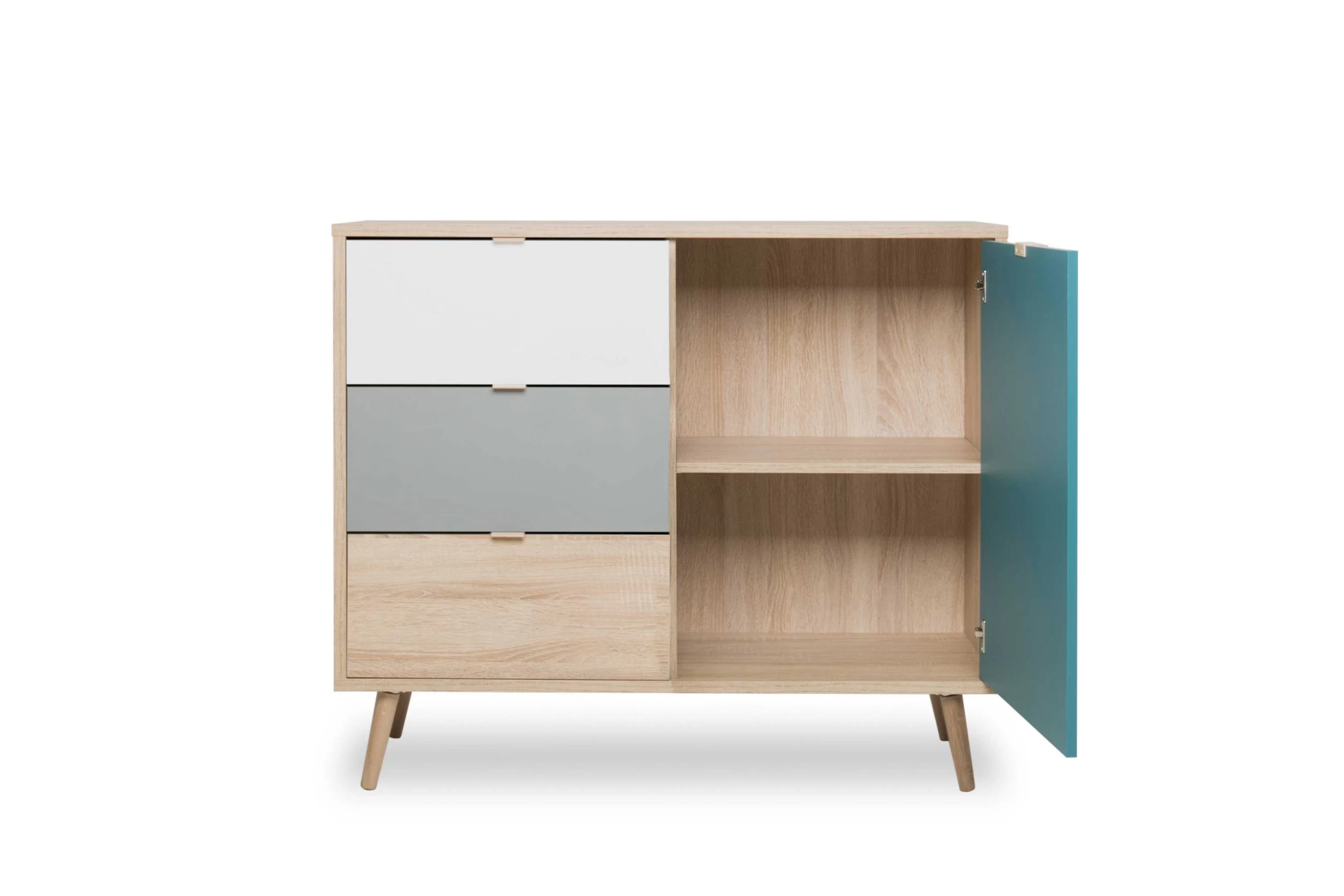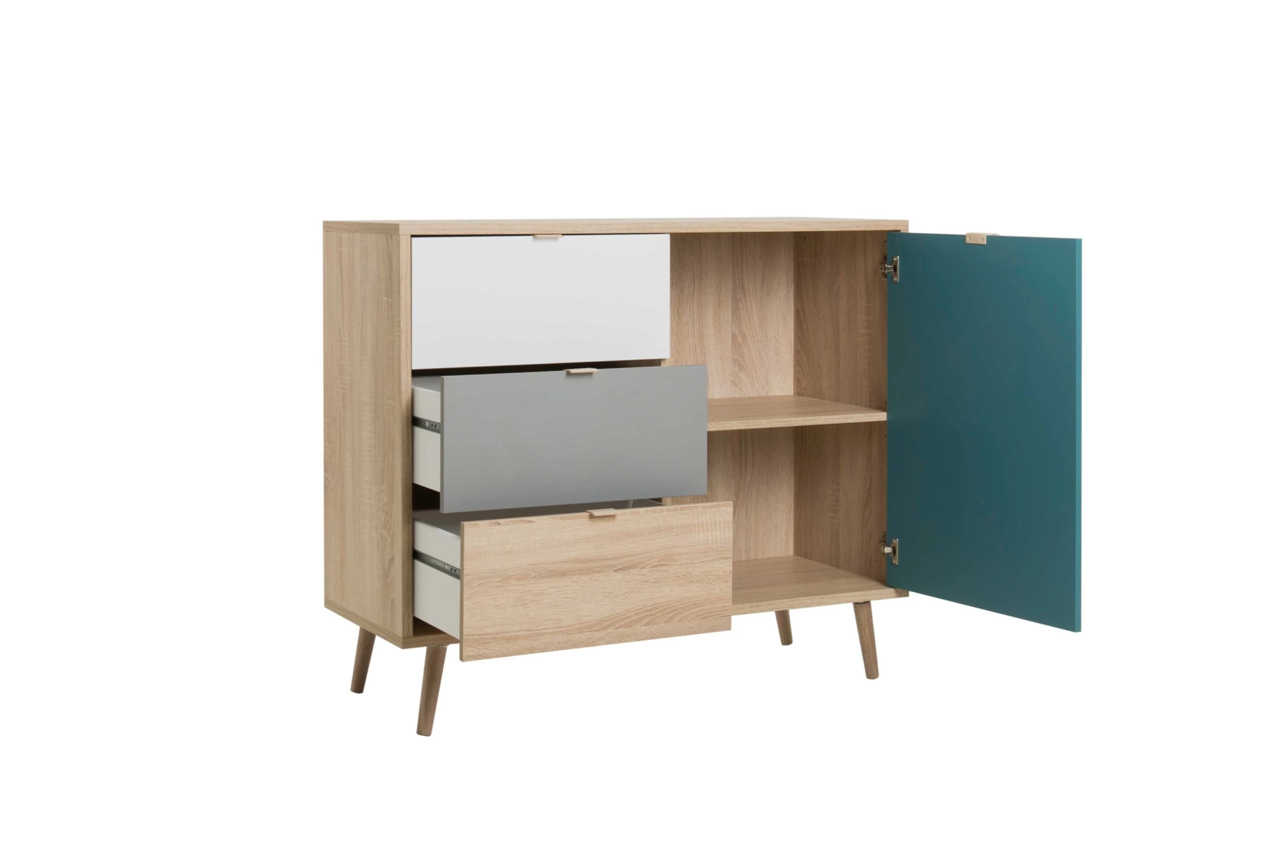 Deze ladekast is uitgerust met 3 laden en een deur met legplank. Een praktische, compacte kast die de oplossing biedt voor heel wat opbergproblemen!