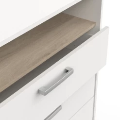 Fan van de Japandi stijl? Dan is deze ladekast zeker iets voor u! De natuurlijke uitstraling van het wickerdecor in combinatie met het zachte kronberg eikdecor creëren sereniteit in de slaapkamer. De zwarte deurknopjes en de zwarte poten getuigen van eenvoud en elegantie. Deze ladekast beschikt over 3 lades voor kousen, ondergoed en beddengoed. Combineer met de andere meubels van de Sayuri-collectie en creëer uw Japandi slaapkamer!