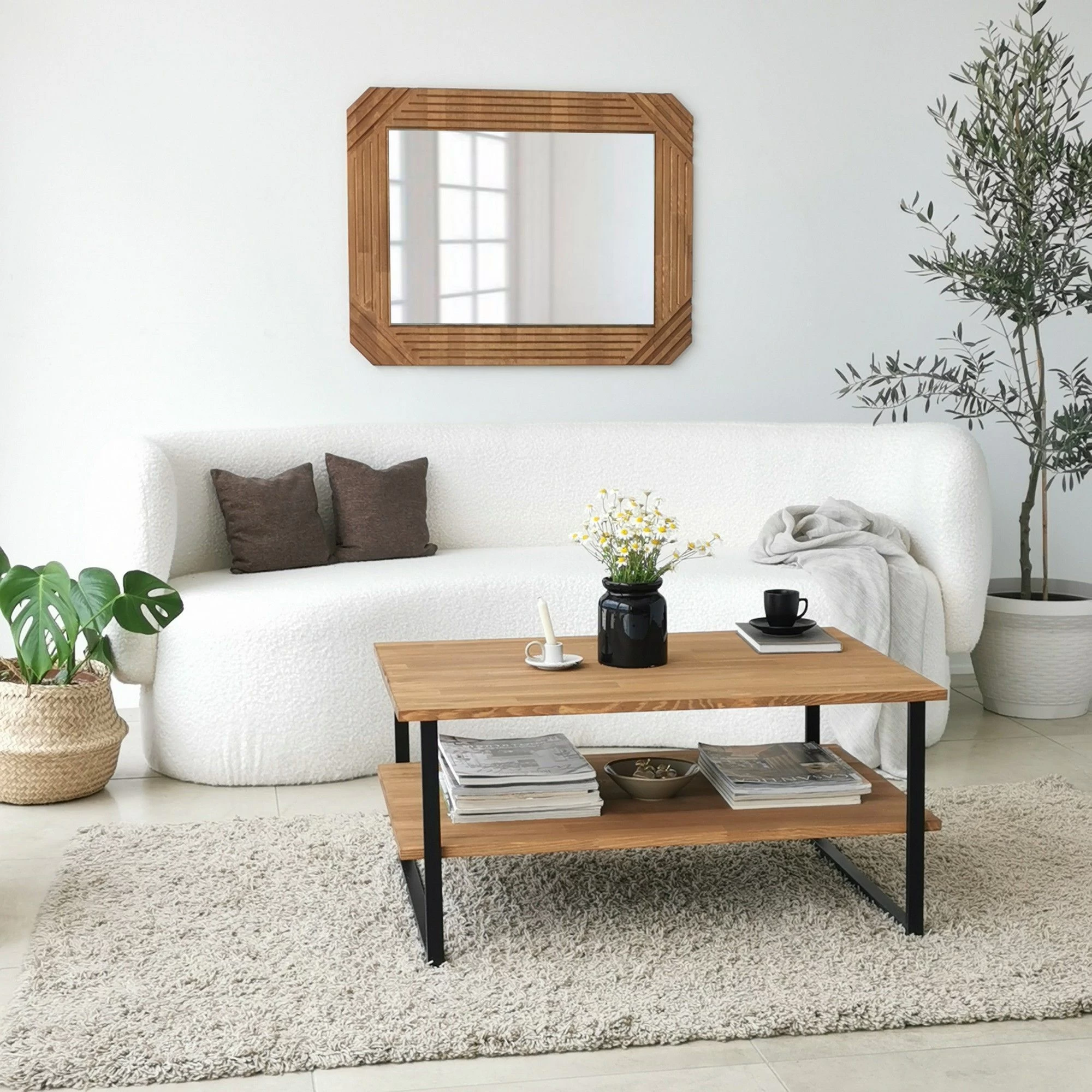 Locelso Salontafel is een duurzame en stijlvolle toevoeging aan elke woonkamer. Gemaakt van 100% grenen massief hout met een roestvrij metalen frame en poten. Antibacterieel en vereist montage. Afmetingen: 85x40x60 cm. Eiken kleur