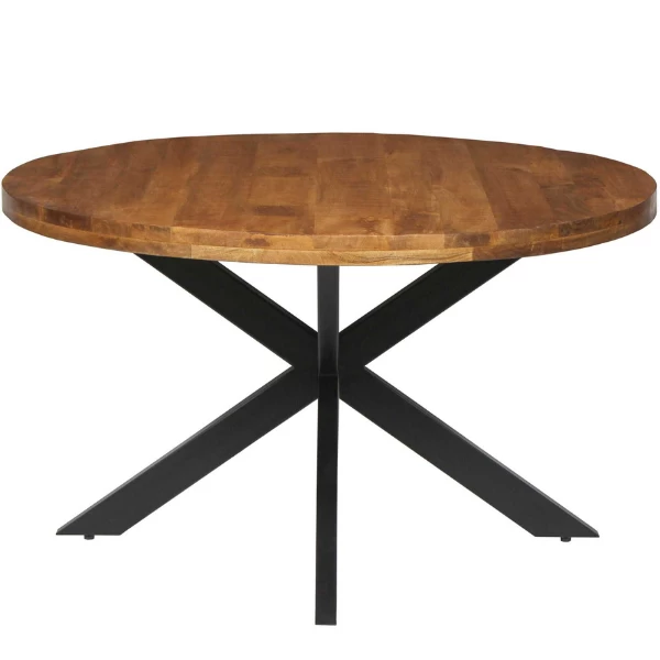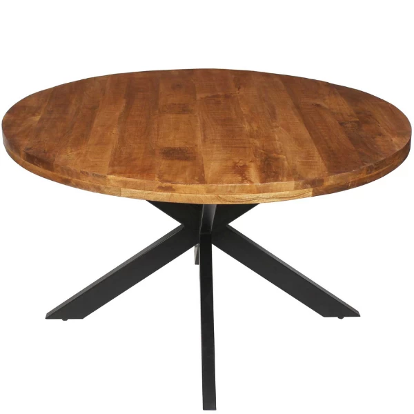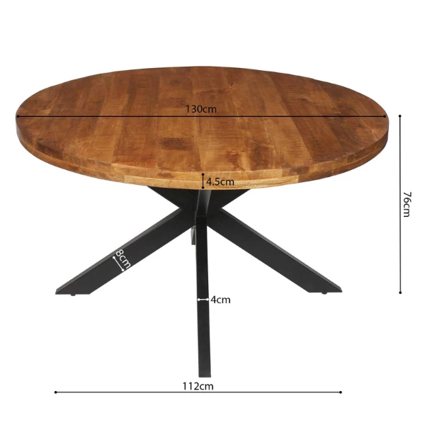 Verbeter je eetervaring met onze Maria tafel. Met een ronde diameter van 130 cm, prachtig exotisch hout en een duurzame metalen structuur voegt deze tafel elegantie toe aan elke ruimte. Hoogte: 76 cm, Breedte/Lengte: 130 cm, Diepte: 130 cm, Bovenblad Dikte: 45 mm.