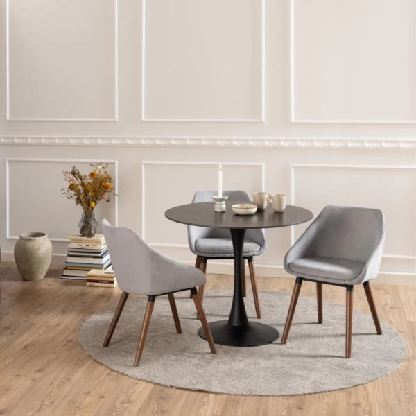 De comfortabele eetkamerstoel Nils is een must-have voor uw interieur. De stoffen bekleding en het walnoten onderstel werden zorgvuldig geselecteerd om een lange levensduur en stabiliteit te garanderen. De armleuningen van deze stoel voegen bovendien een extra niveau van comfort toe, zodat je voluit kan ontspannen en genieten van je maaltijden.