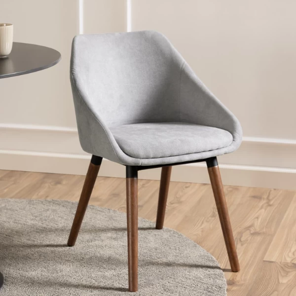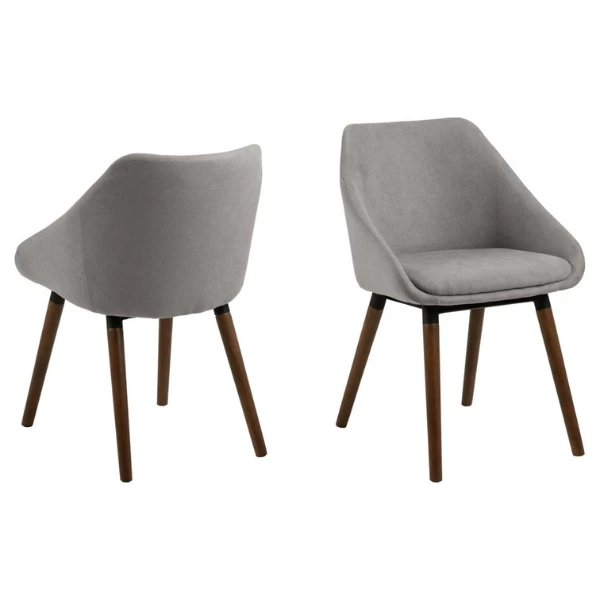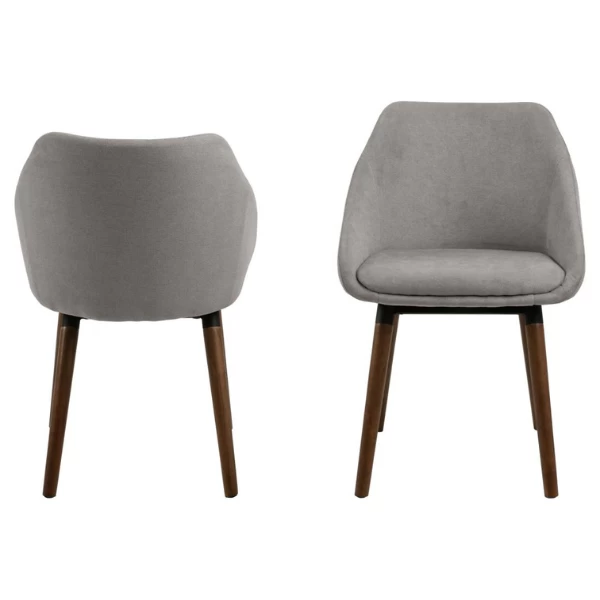 De Nils eetkamerstoel: Armleuning, Enjoy stof lichtgrijs, onderstel walnoot gebeitst NC gelakt rubberwood. Maximaal comfort en stijlvol ontwerp.