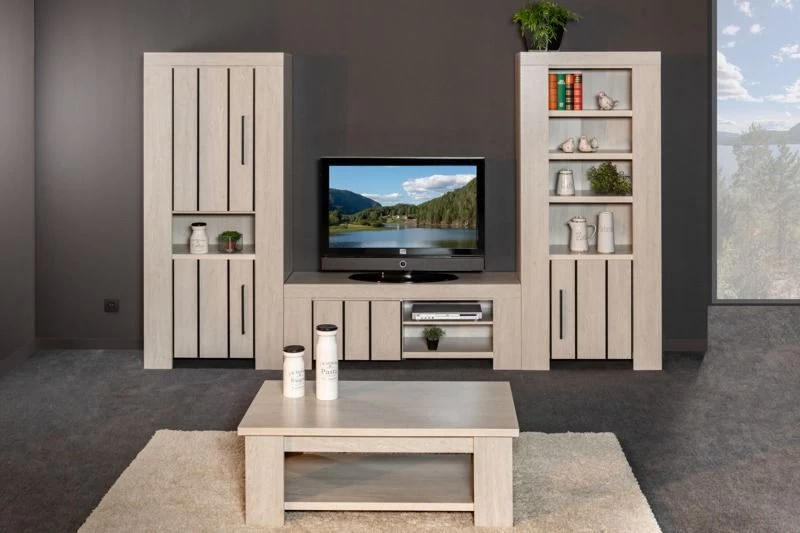De moderne meubels van de Gilio-collectie zijn gemaakt uit spaanplaat met een afwerking in lichtgrijze eik decor. Het leuke aan deze meubels is dat er fijne zwarte details aanwezig zijn die meteen voor een speciaal design zorgen.