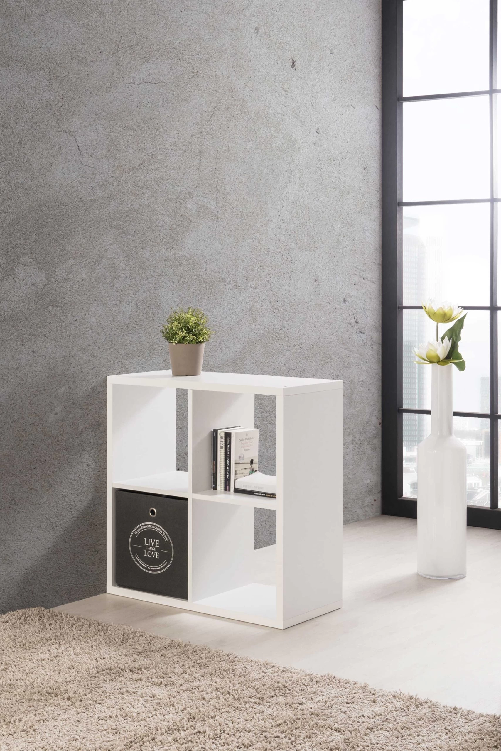 Witte opbergkast Max met 4 vakken, gemaakt van spaanplaat.
