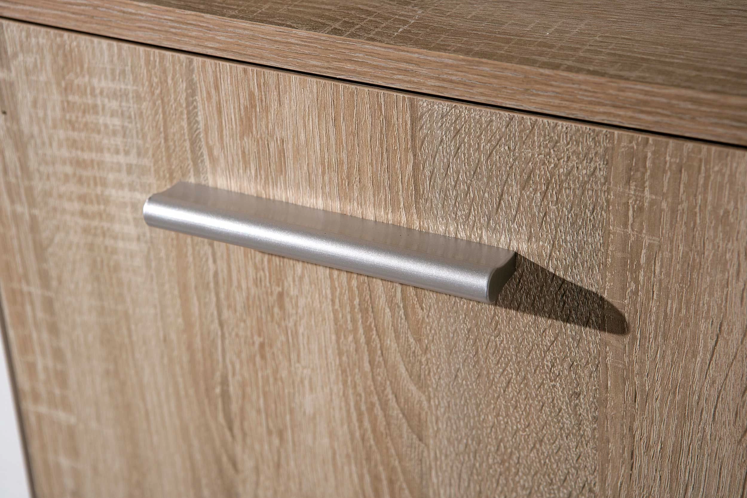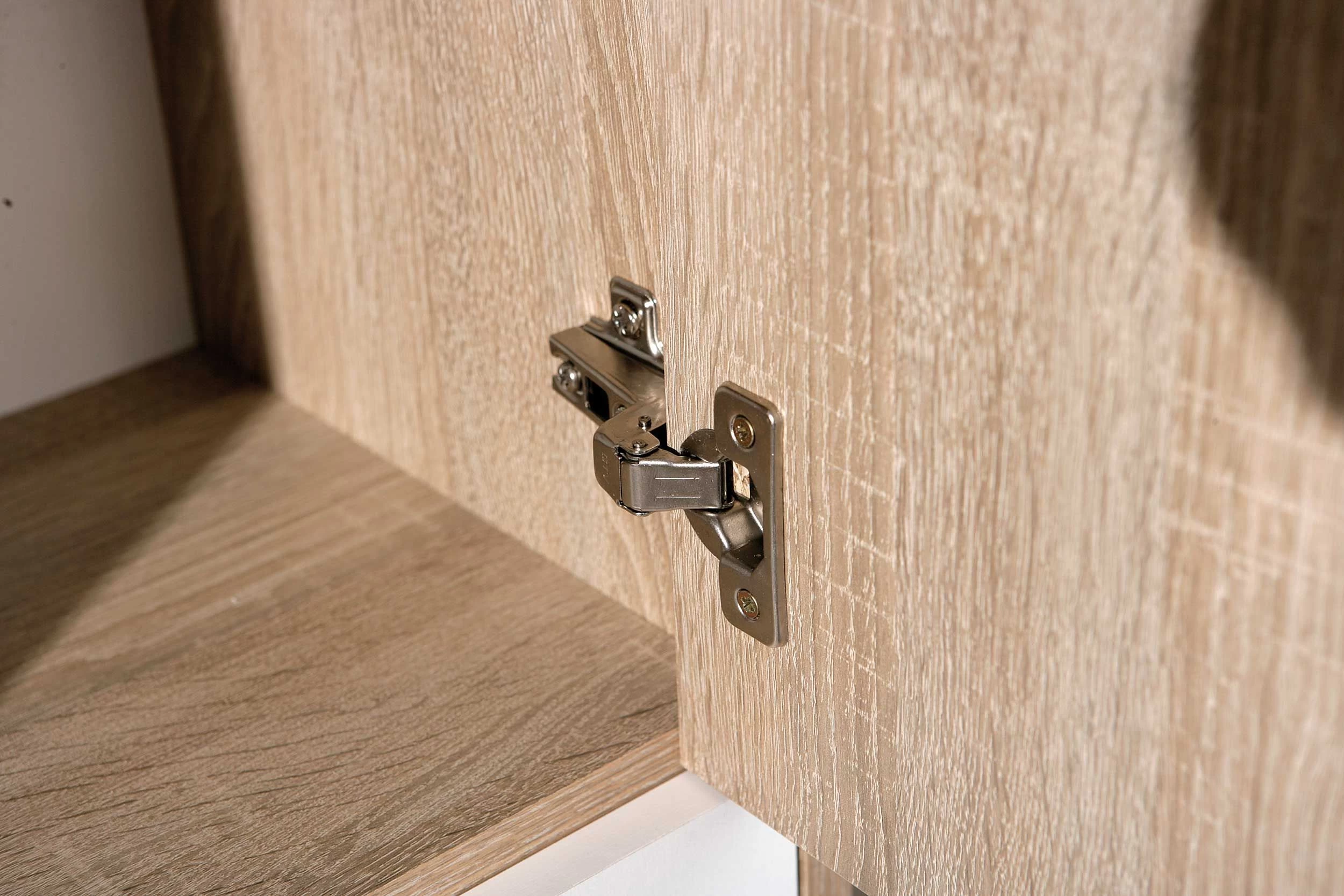 Deze opbergkast zorgt voor een moderne toets in je interieur. De kast is gemaakt van spaanplaat en werd afgewerkt met een laagje melamine. De mix van wit en eikdecor zorgt voor een unieke combinatie die alle aandacht naar zich toe trekt. Opbergkast Nicolus bestaat uit 6 opbergvakken die je elk afzonderlijk kan afsluiten met een deurtje.