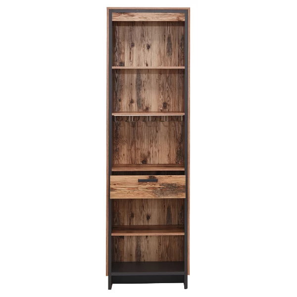 Kast Delano 60x38x203cm uit spaanplaat met afwerking in houtlook en antraciet. Met één lade.
