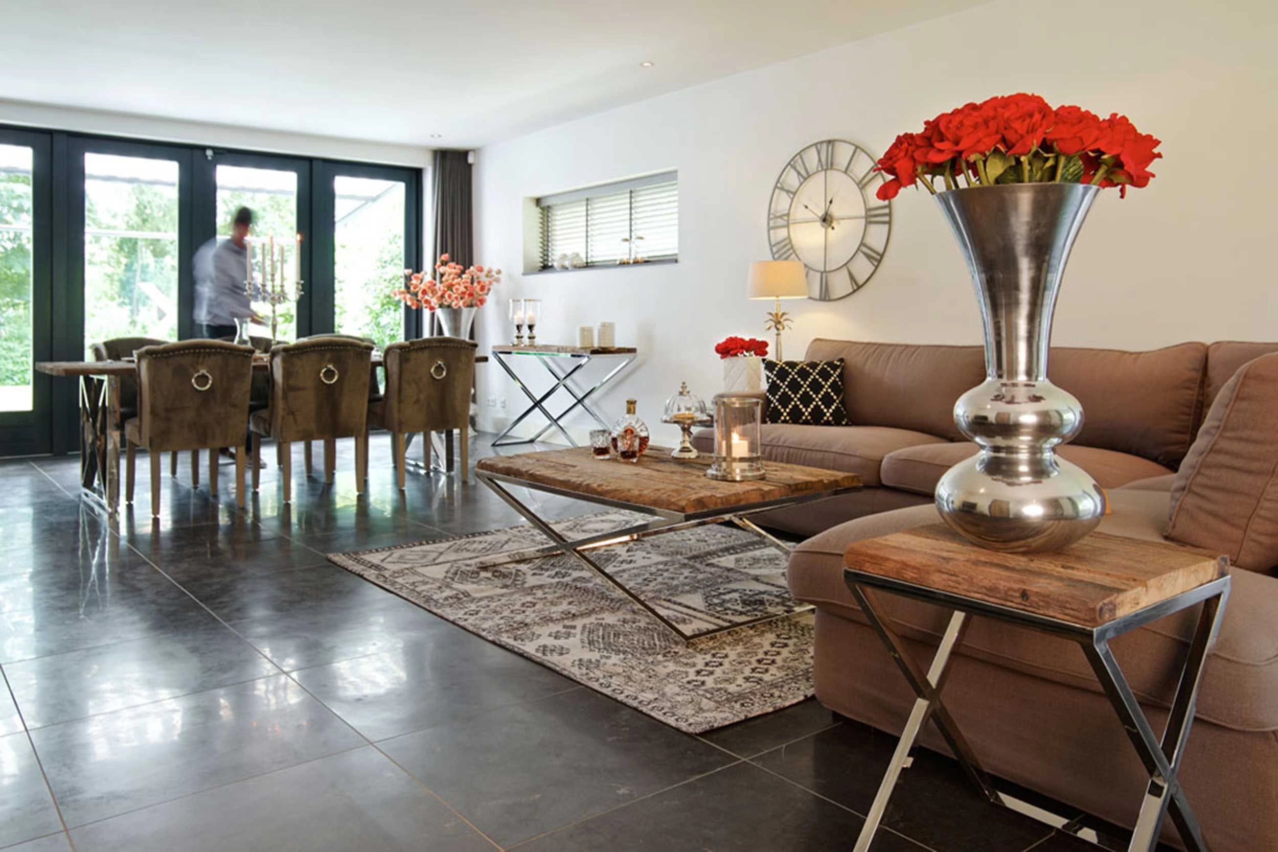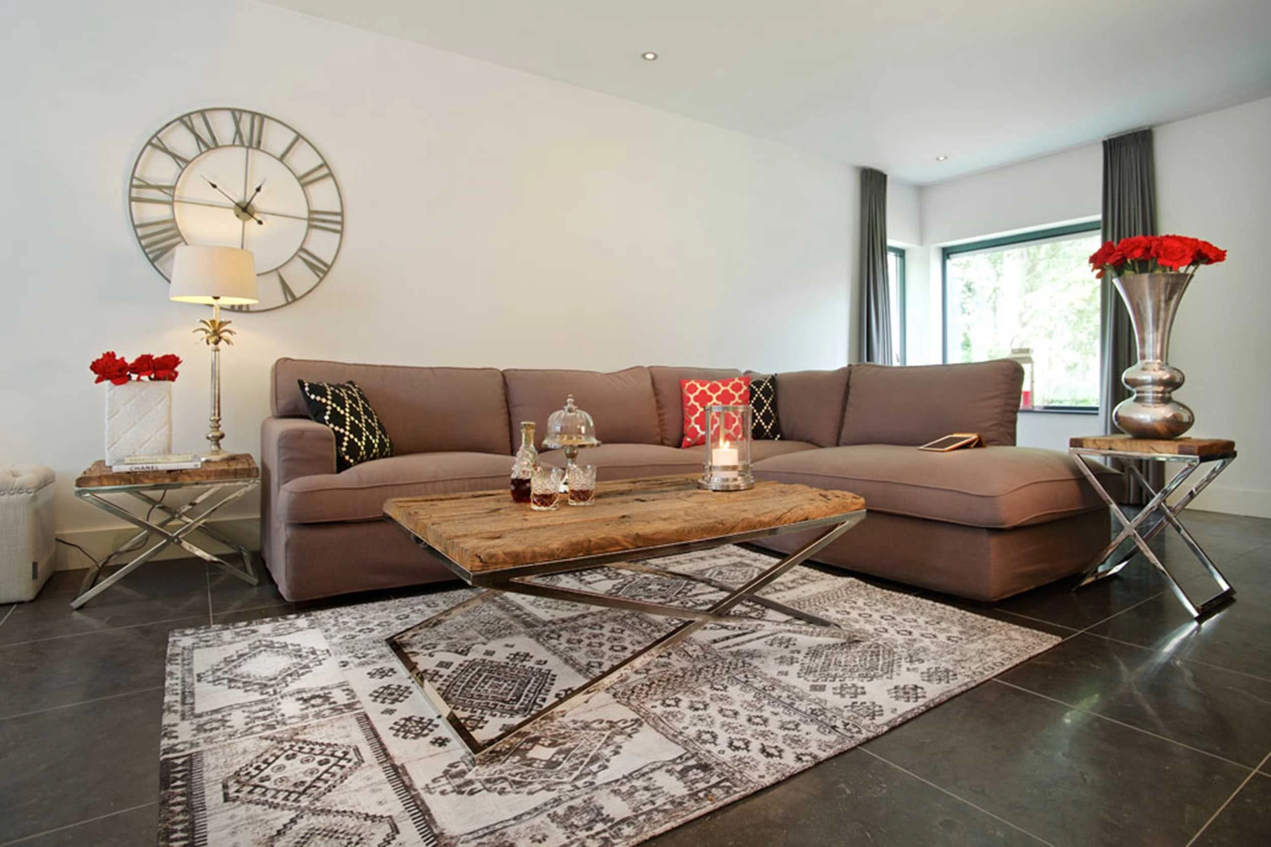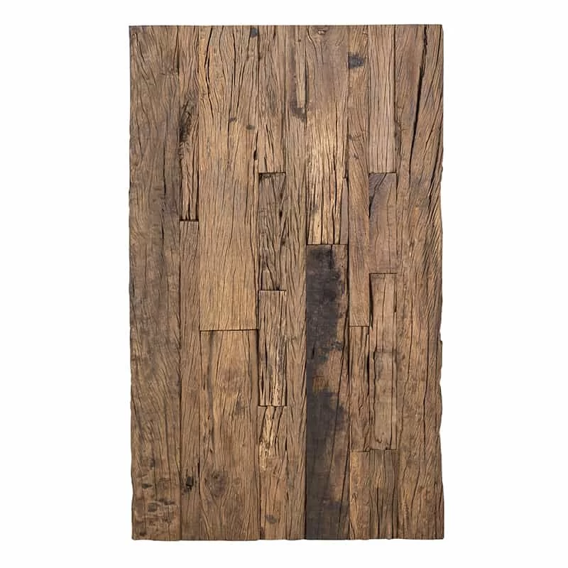 Salontafel Kensington 130x80cm in bruin en zilver, gemaakt uit gerecycleerd hout en zilvergrijs, blinkend staal.