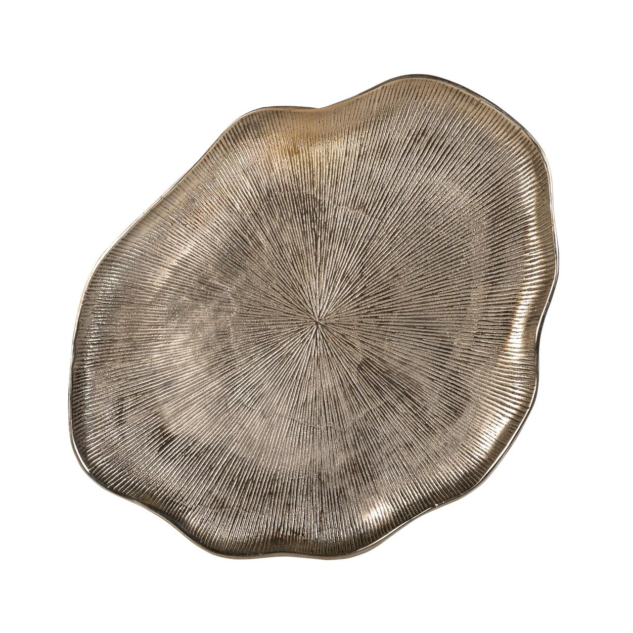 Deze set van 3 salontafels Volenta in champagnekleur heeft zich laten inspireren door de natuur. De speelse lijnen en elegante vormen zorgen voor een unieke uitstraling. Het aluminium tafelblad wordt ondersteund door zwarte poten, eveneens in aluminium.