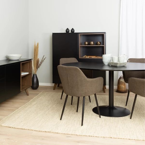 Ronde eettafel Harmony vormt met zijn ronde tafelblad en trompetvormige voet een harmonieus geheel. De zwarte kleur zorgt voor een luxueuze uitstraling. Aan deze tafel is er plaats voor 4 personen. Bekijk onze website voor bijpassende stoelen en maak de look compleet!