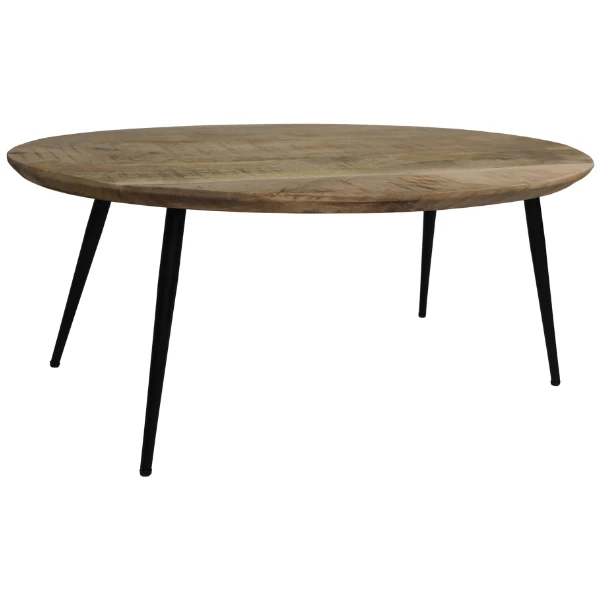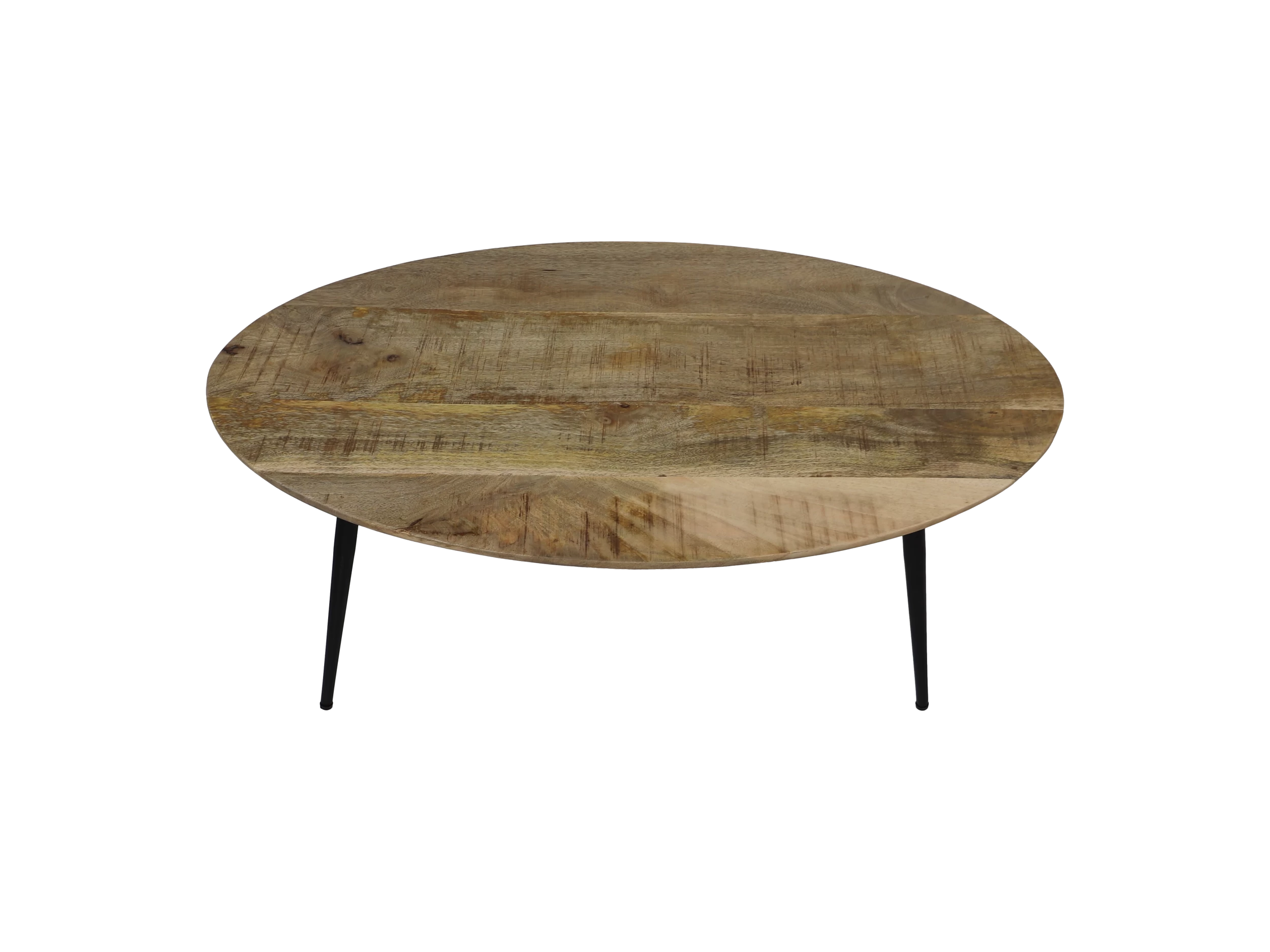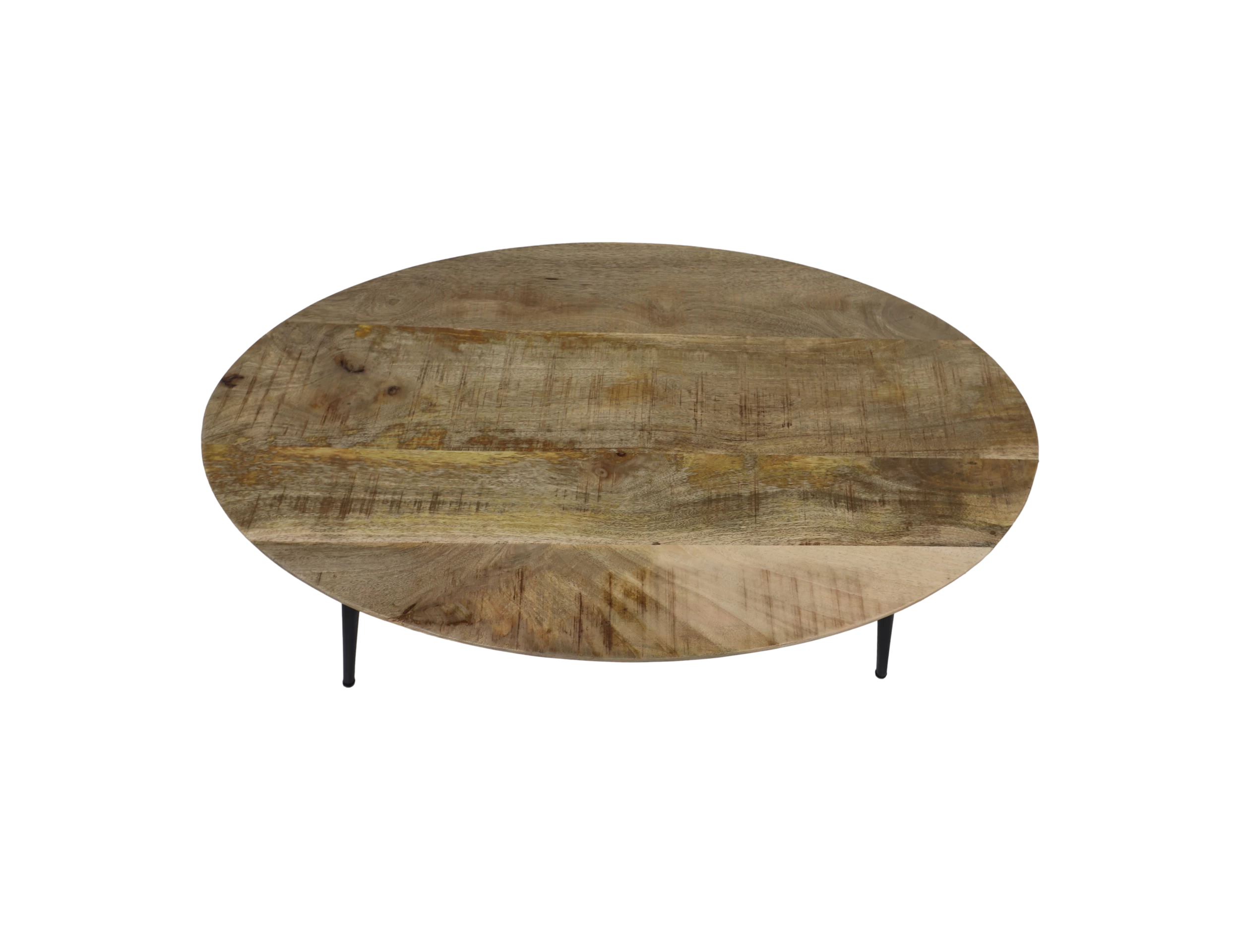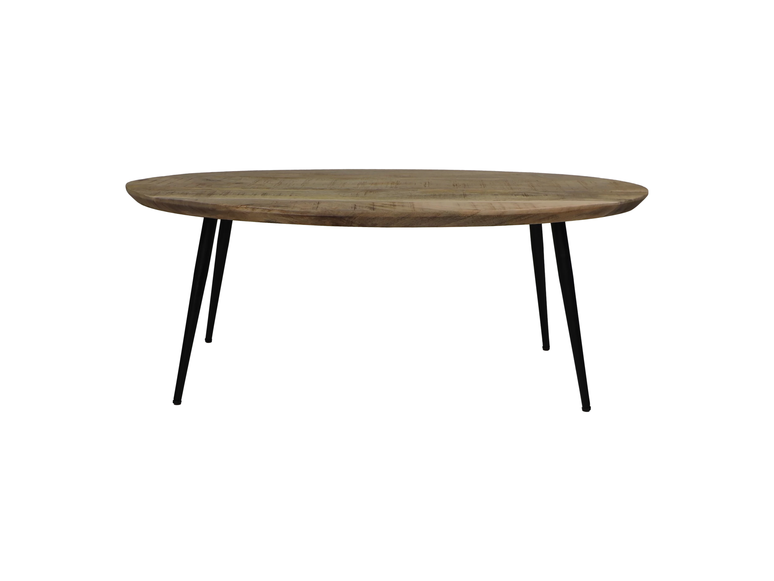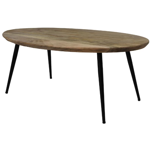 Ovale salontafel Bern 100x60cm. Vervaardigd uit mangohout met zwarte metalen poten.