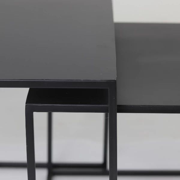 Deze set salontafels met een strak en eigentijds ontwerp past in verschillende interieurs. Het zwarte metaal zorgt voor een stoere look.ย