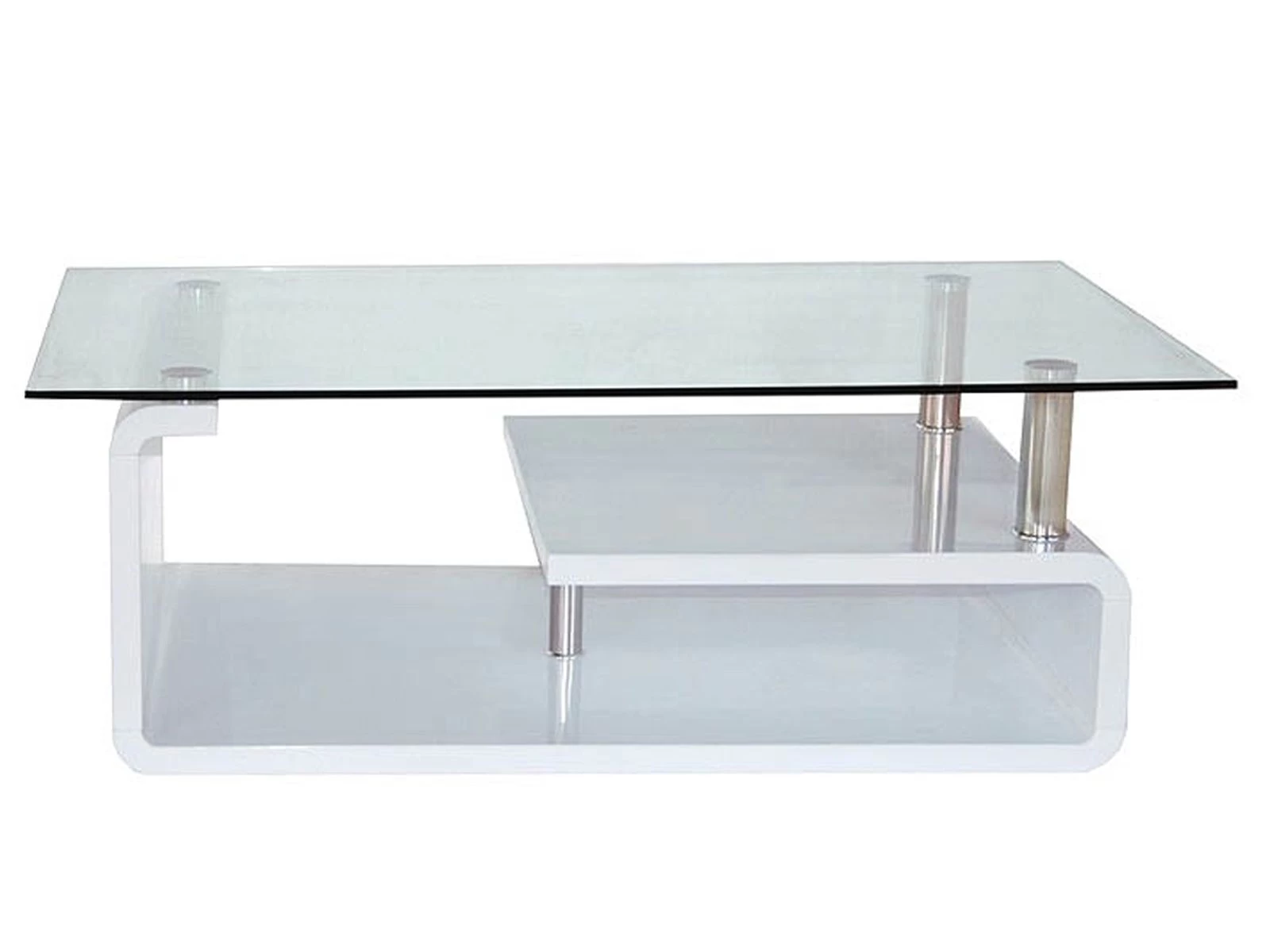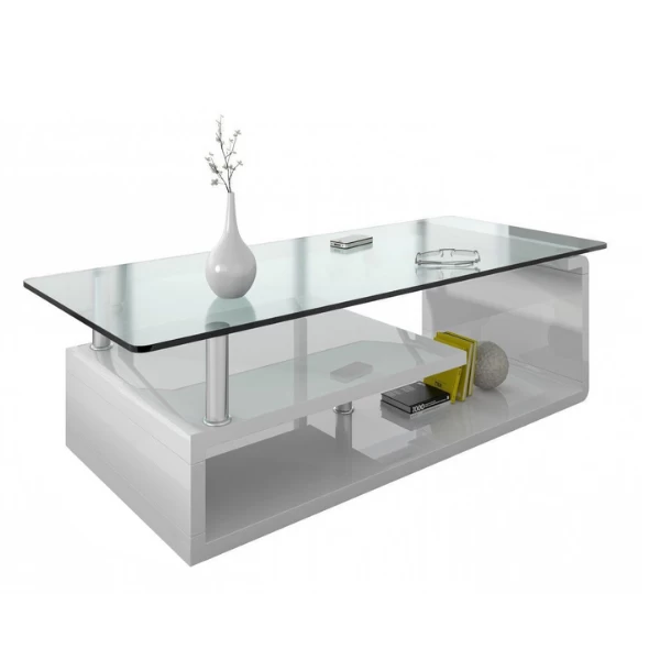 Salontafel Hilda uit glas en MDF, hoogglans wit.