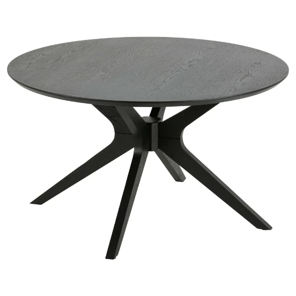 Salontafel Laurence met blad in zwart eikdecor en zwart onderstel, Ø80 x 45 cm.