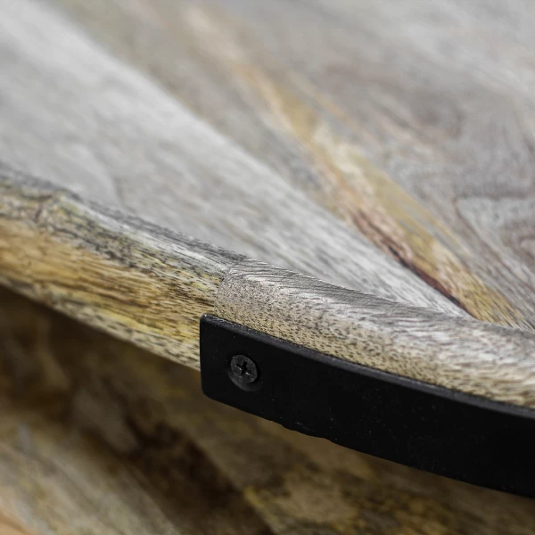 Deze ovalen salontafelset Paulson heeft een tafelblad inΒ mangohoutΒ en eenΒ zwart metalen onderstel. De combinatie van natuurlijk hout en zwart ijzer geeft de set eenΒ robuuste look. De elegante tafels zijn ook functioneel. Het tafelblad heeft eenΒ opstaande rand, waardoor je spullen niet van de tafel vallen. Bovendien zijn de tafels plaats besparend, aangezien zeΒ in elkaar schuiven.Β