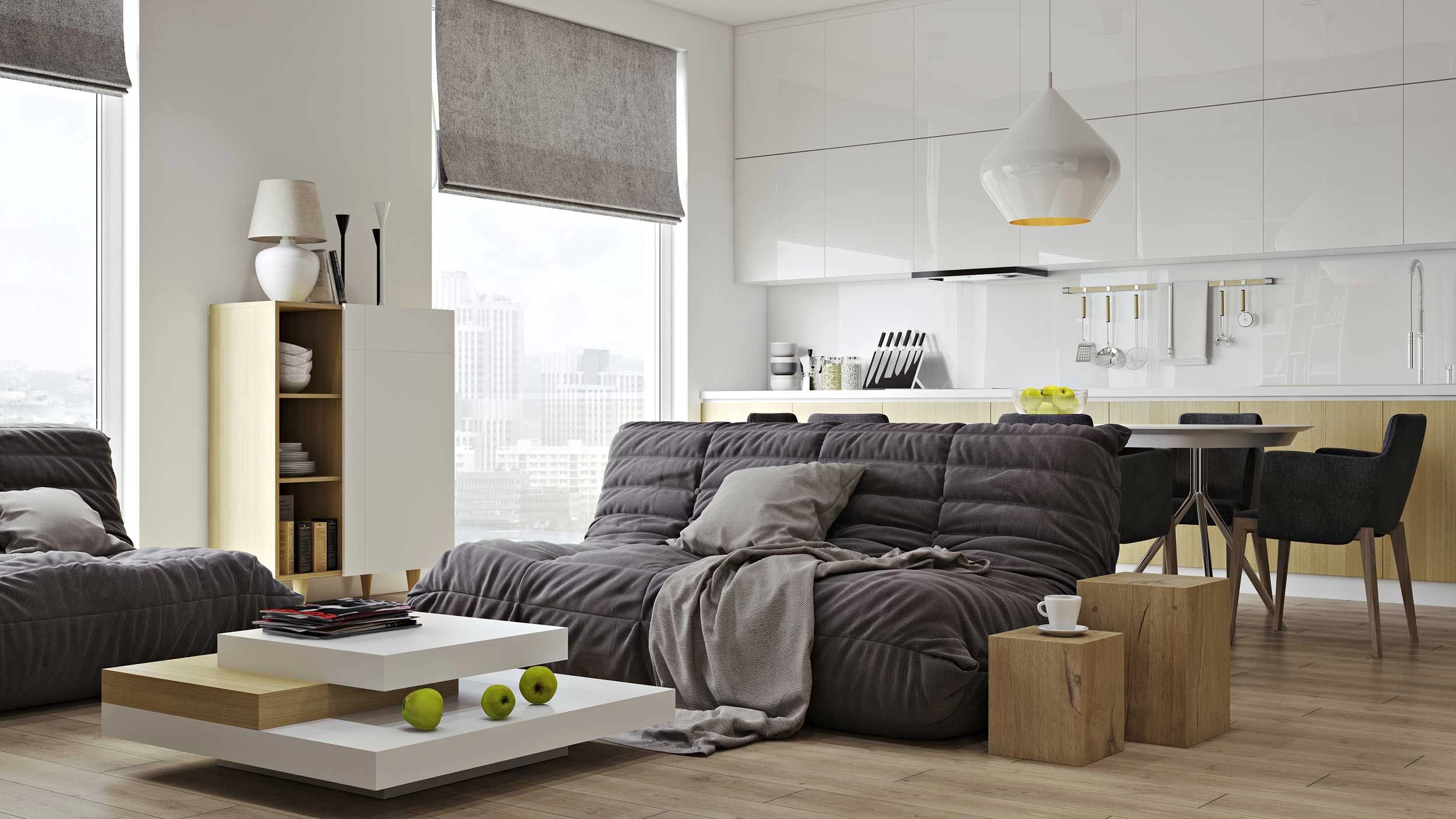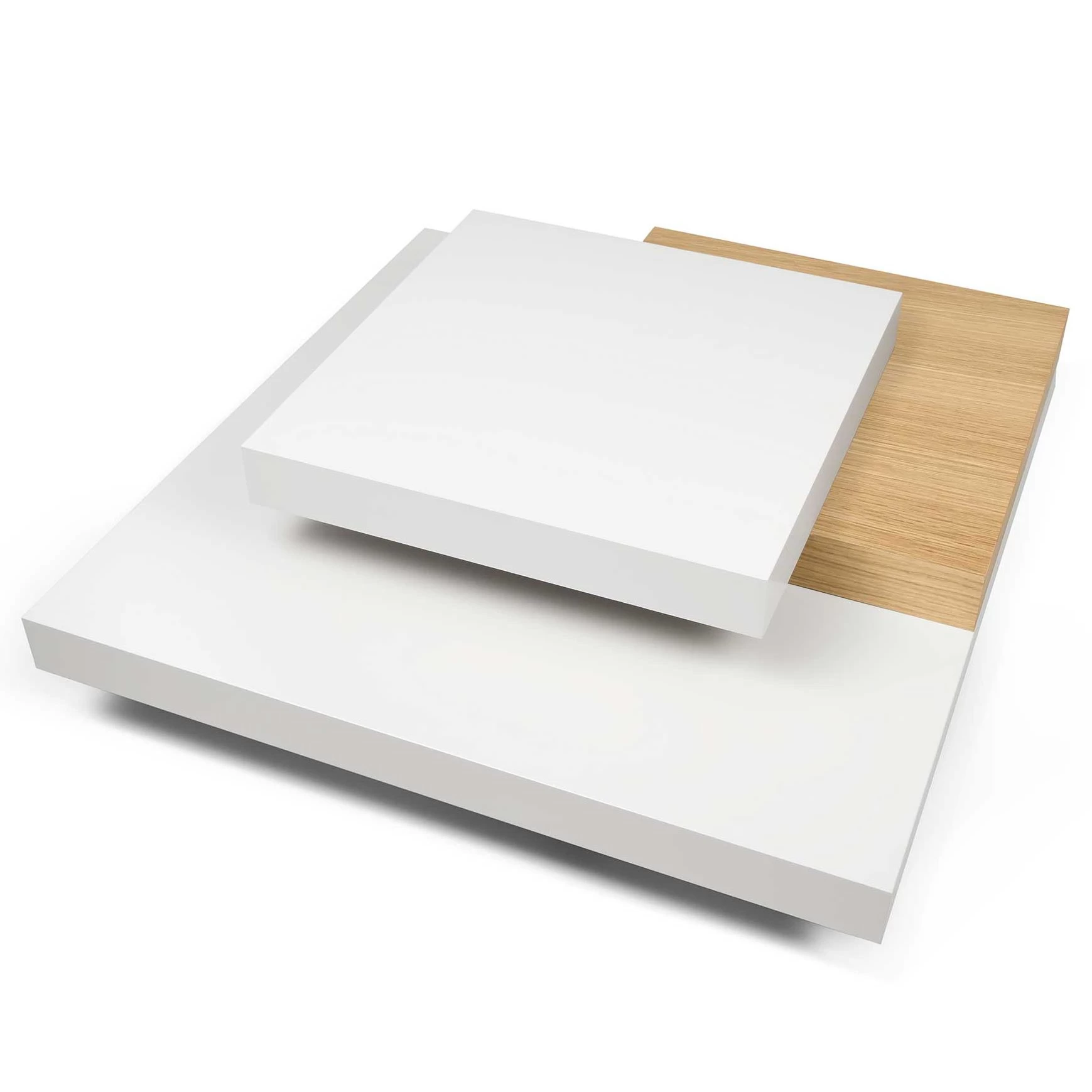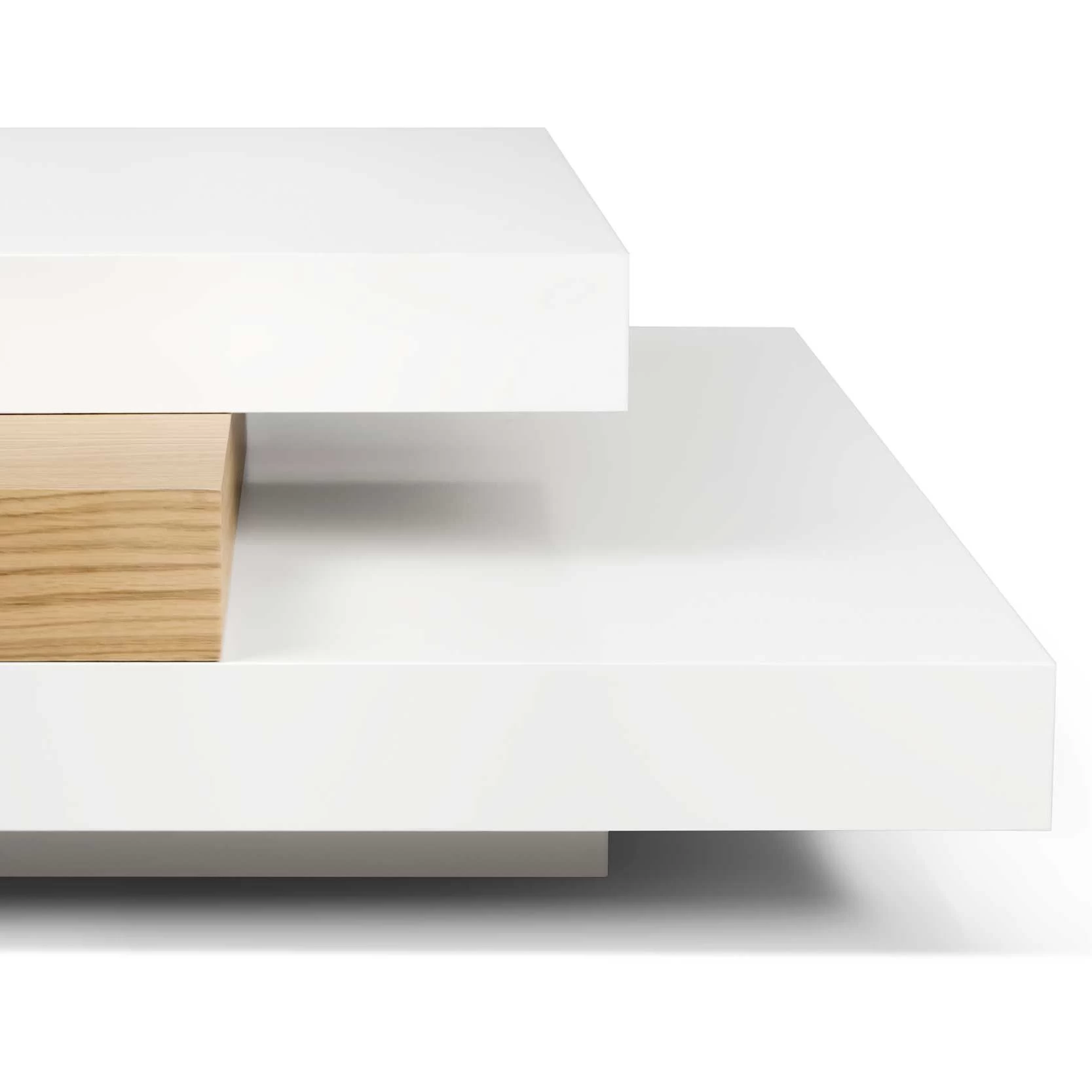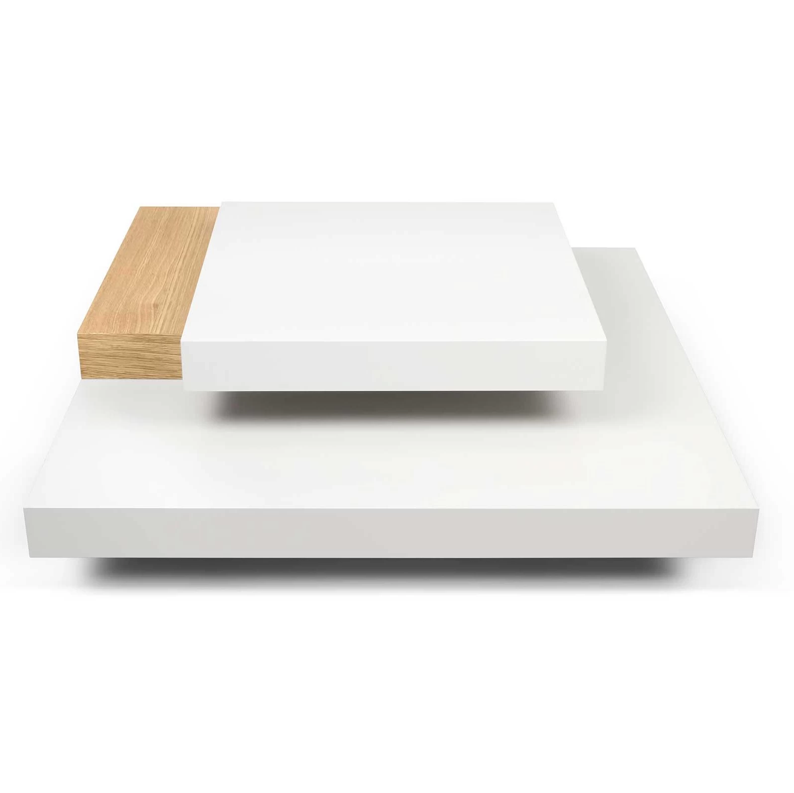 Salontafel Selena met verschillende niveaus, afwerking in mat wit en eikfineer.