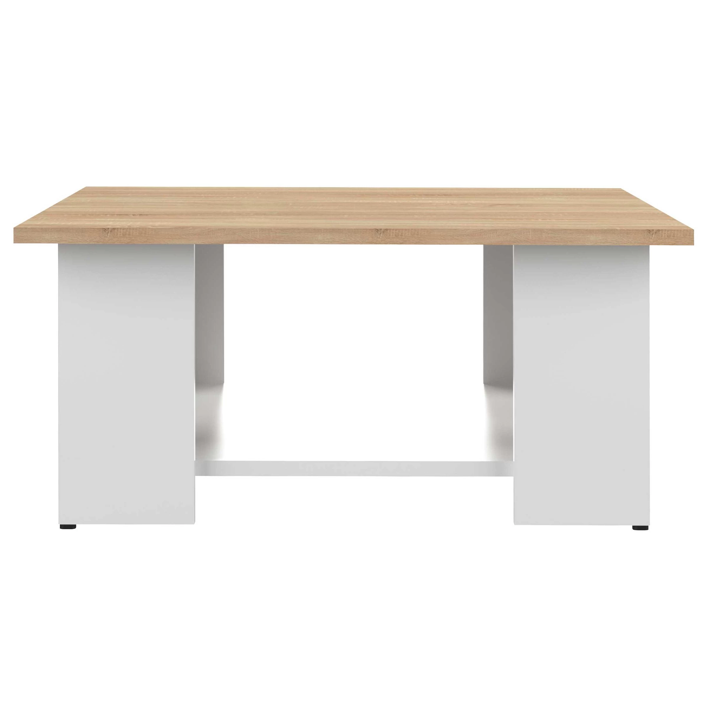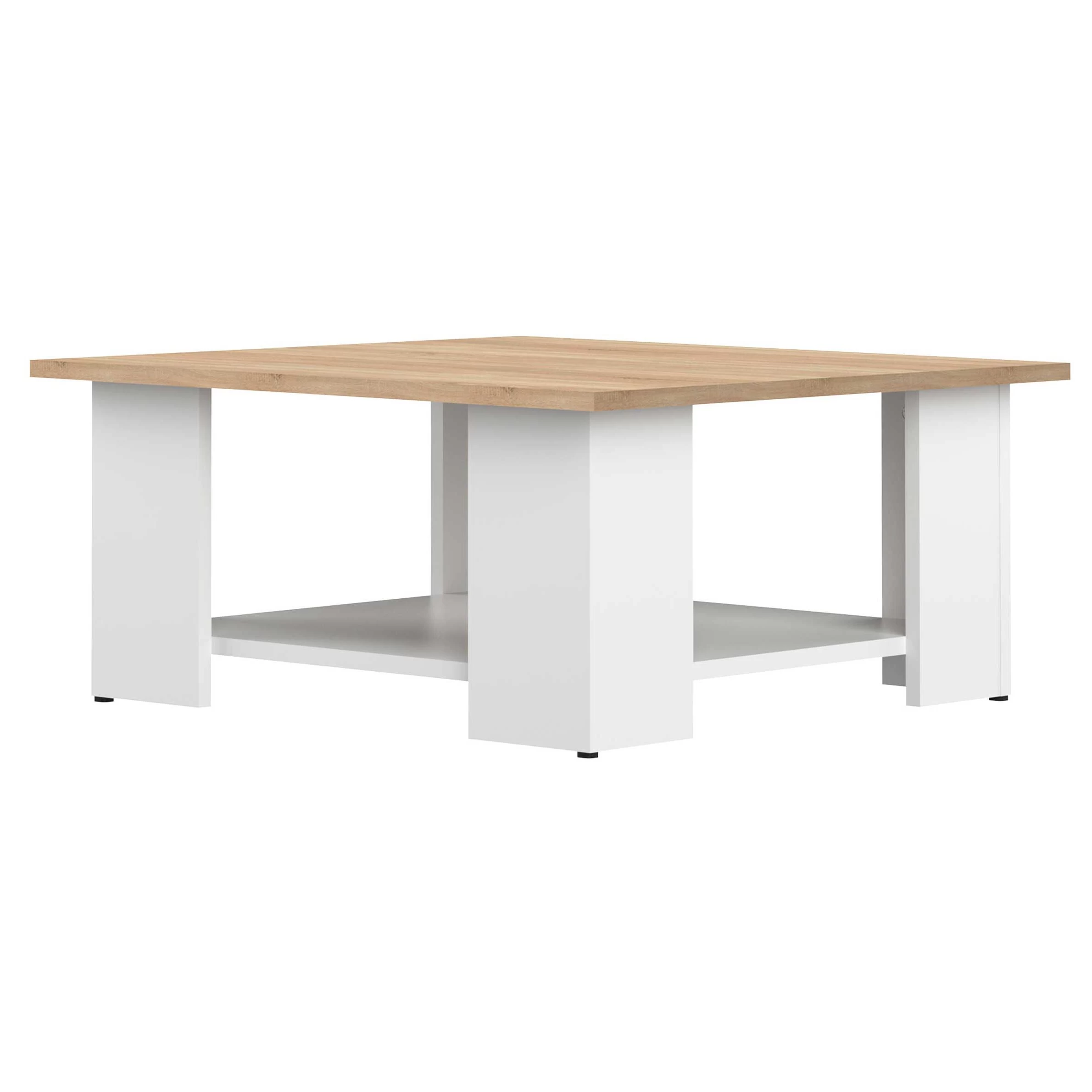 Met haar beperkte afmetingen is salontafel Square de ideale salontafel voor kleinere zithoeken. Deze salontafel is gemaakt van spaanplaat en kreeg een witte afwerking en tafelblad in eikdecor. Onderaan beschik je over een ruime legplank waarop je tijdschriften, afstandsbedieningen en meer kan opbergen.