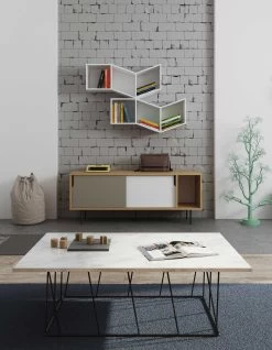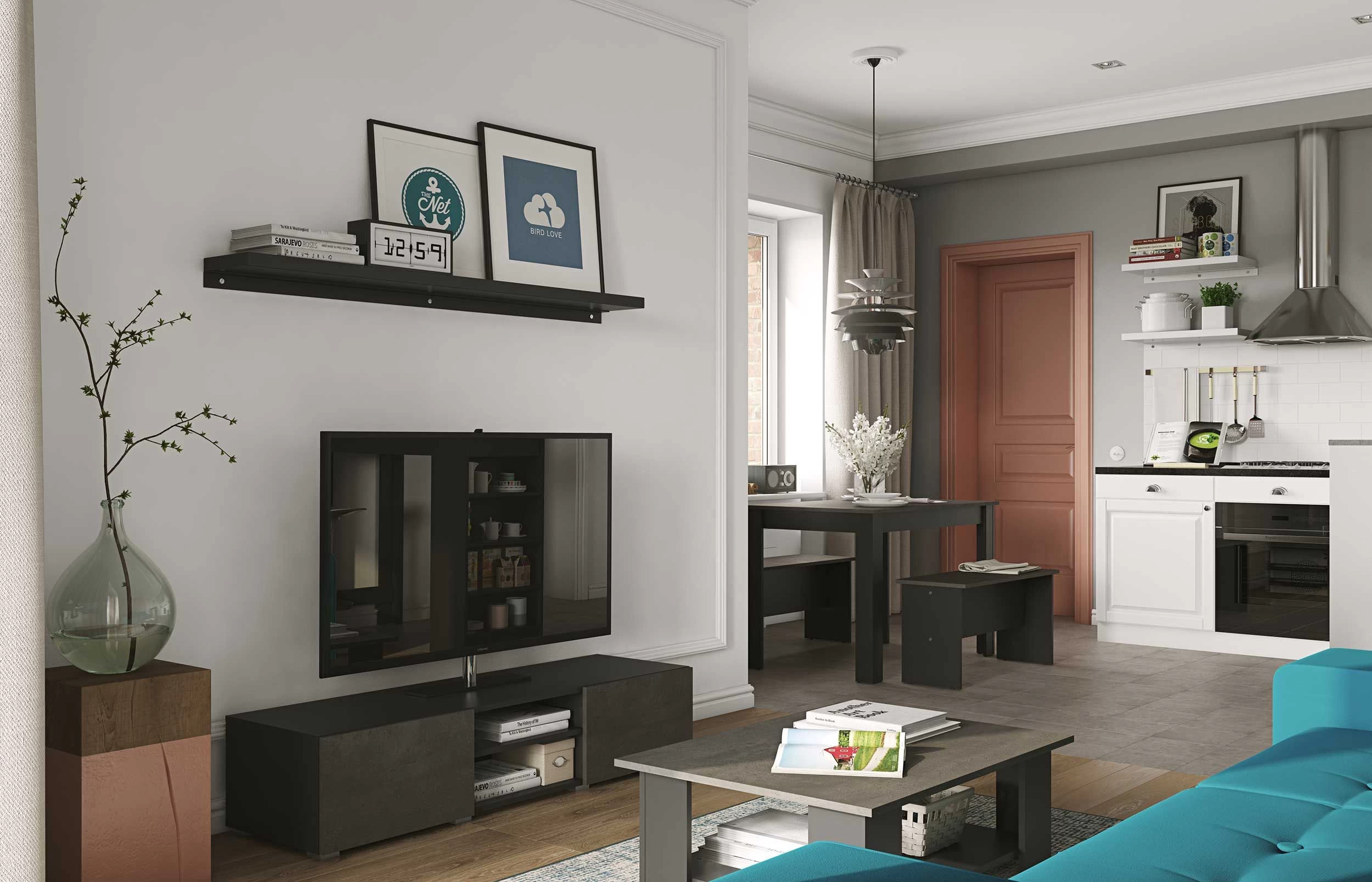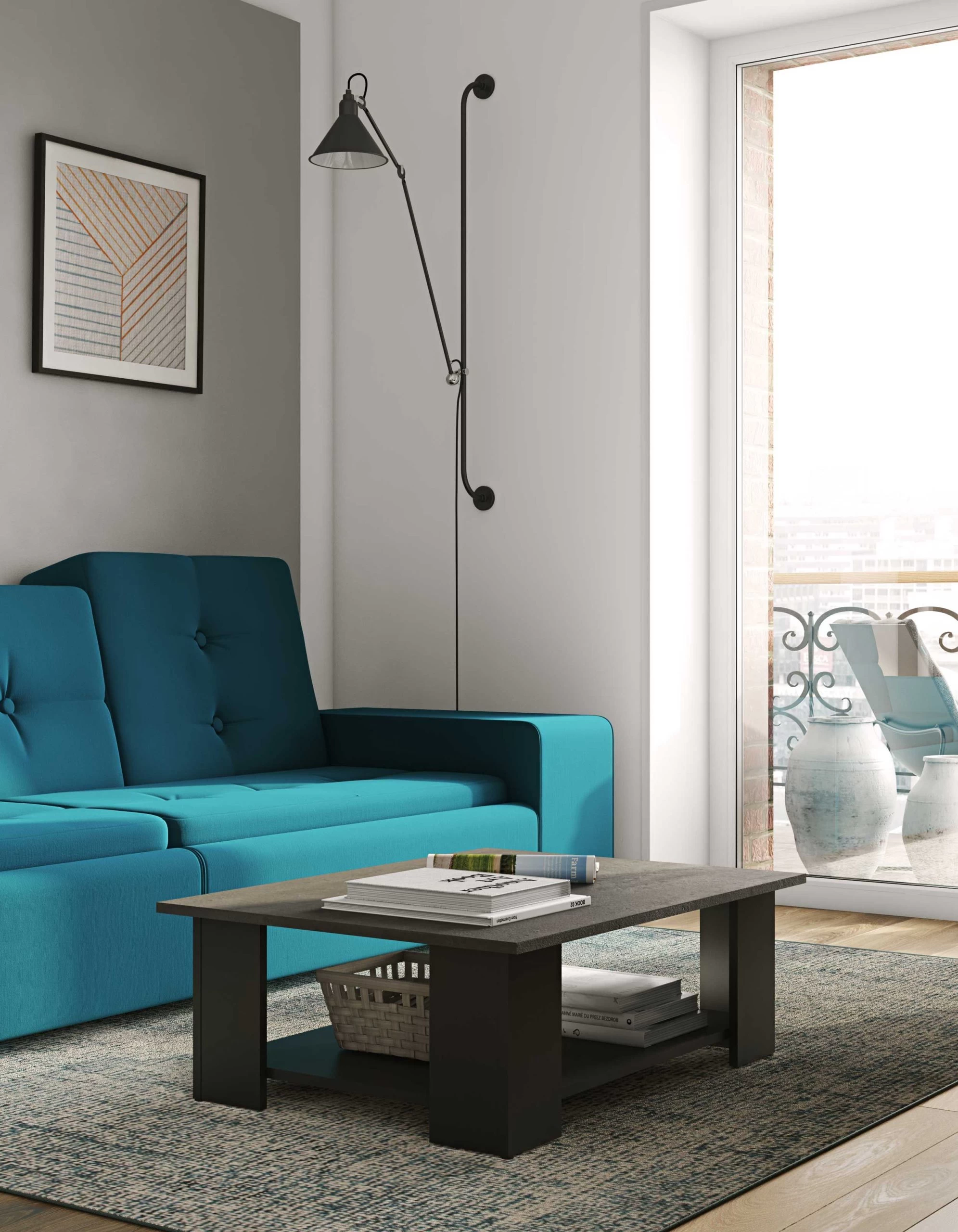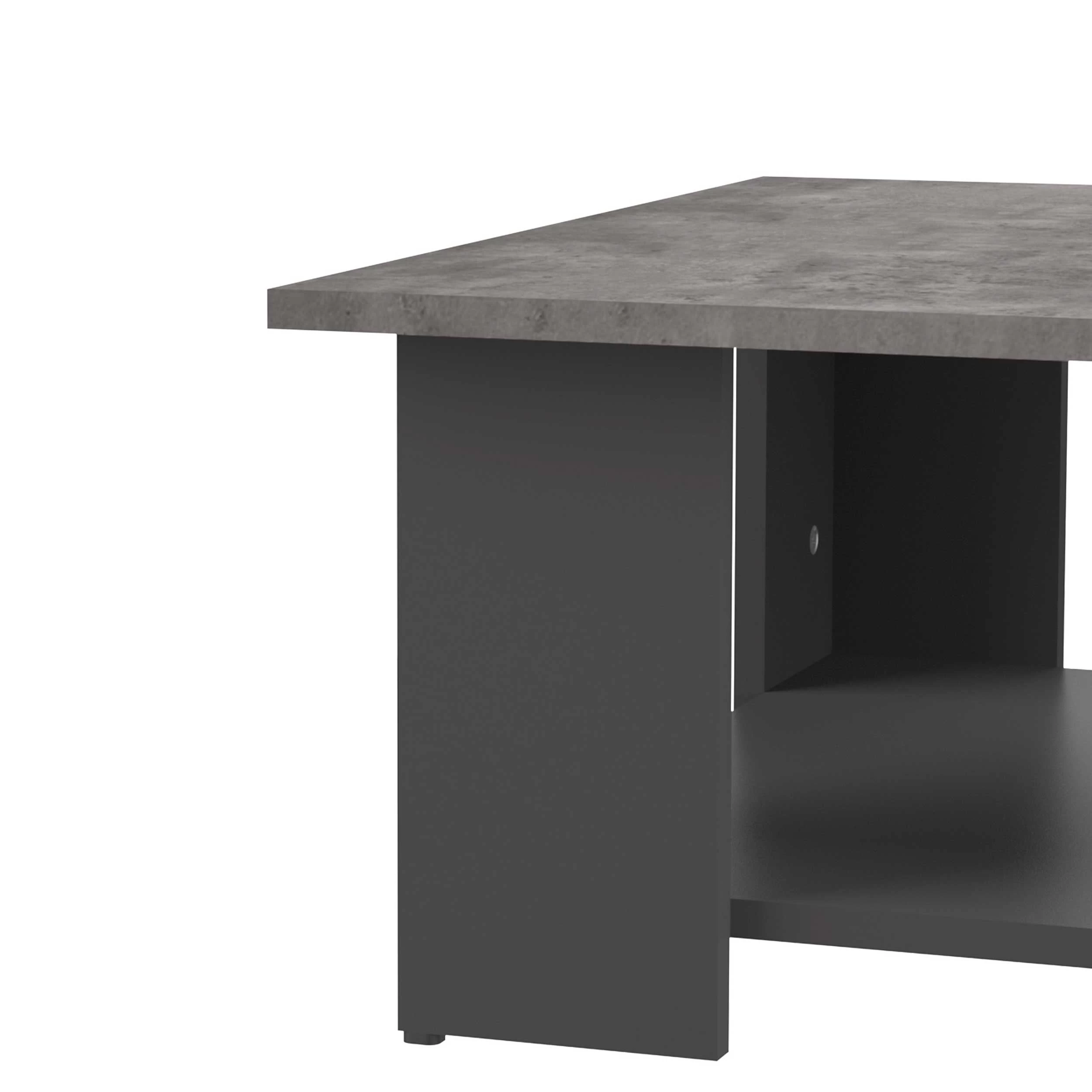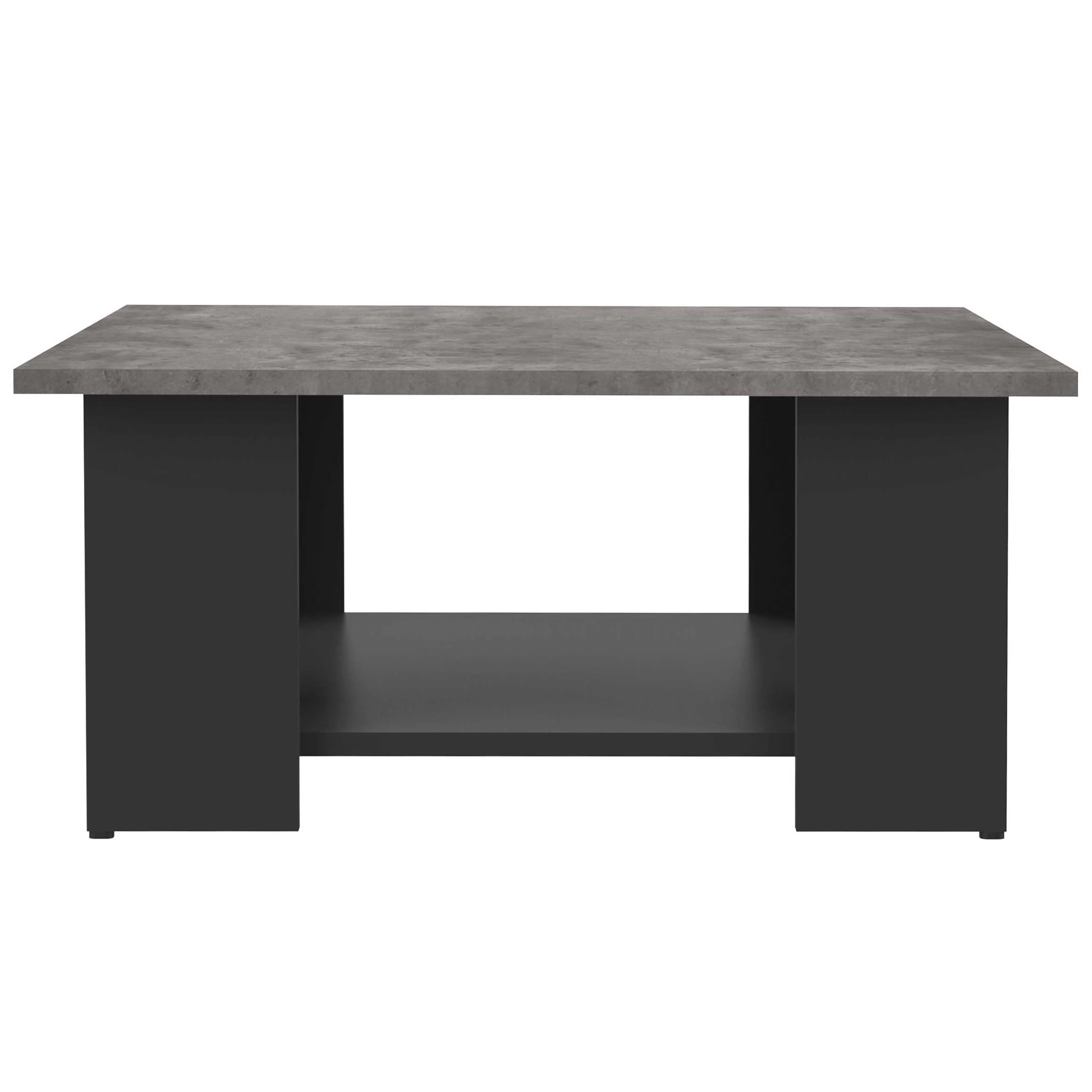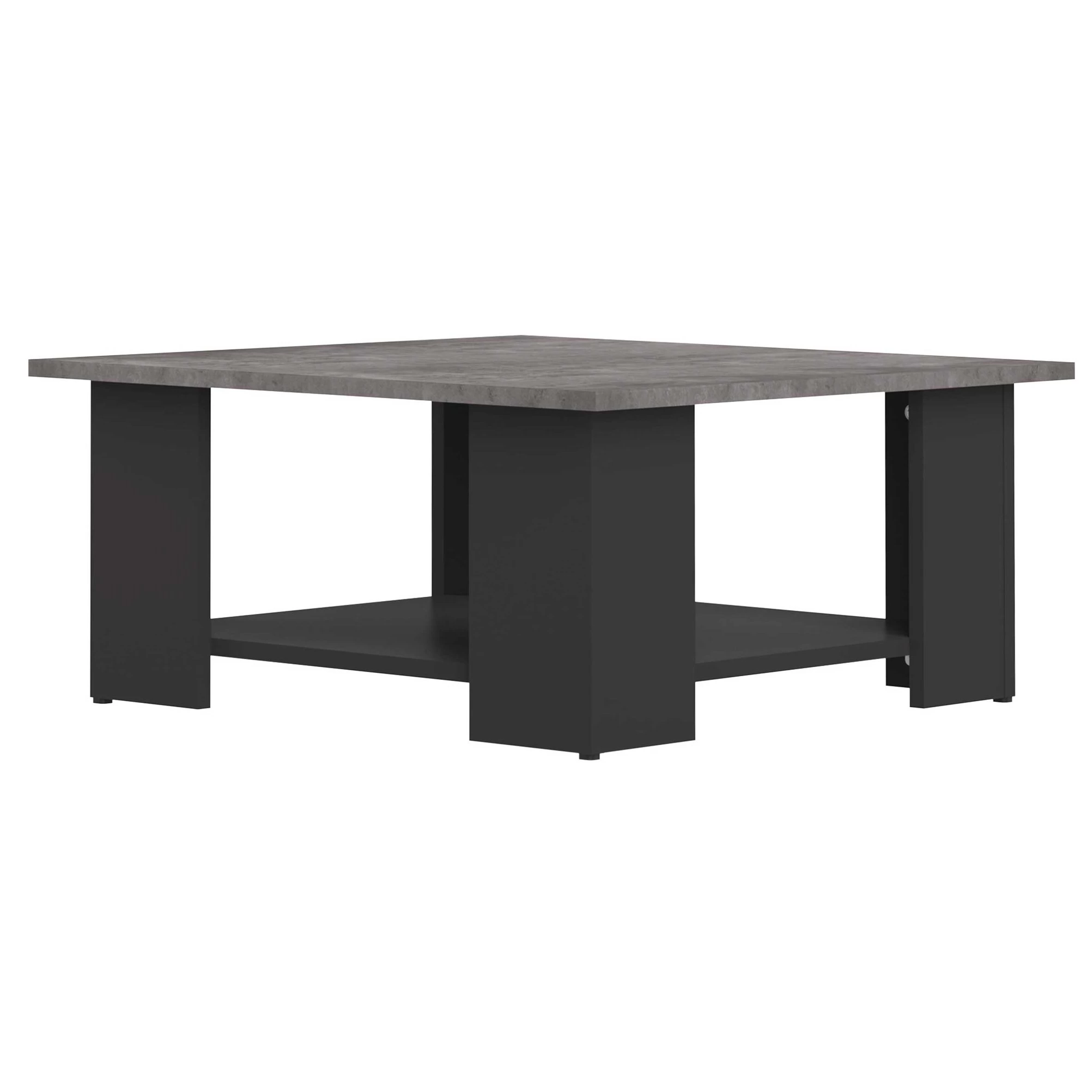 Met haar beperkte afmetingen is salontafel Square de ideale salontafel voor kleinere zithoeken. Deze salontafel is gemaakt van spaanplaat en kreeg een zwarte afwerking en tafelblad in betonlook. Onderaan beschik je over een ruime legplank waarop je tijdschriften, afstandsbedieningen en meer kan opbergen.