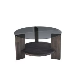 Locelso Salontafel | 100% Gehard Glas | Frame Van Pijnboomhout | Antraciet Donkerbruin