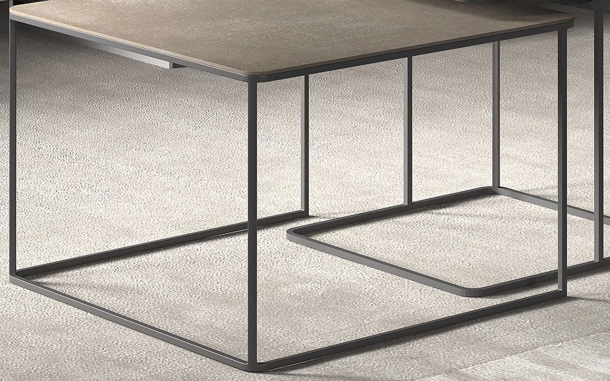 Deze set van 2 vierkante bijzettafeltjes Lou kan ook perfect als salontafel gebruikt worden. Het zwarte metalen frame zorgt voor een stoere, industriële look, terwijl het goudkleurig blad zich ontfermt over een warme sfeer in je woonkamer. Kies er zelf voor of je ze apart of samen plaatst. Er is zeker ruimte voor creativiteit!