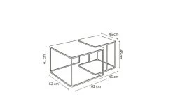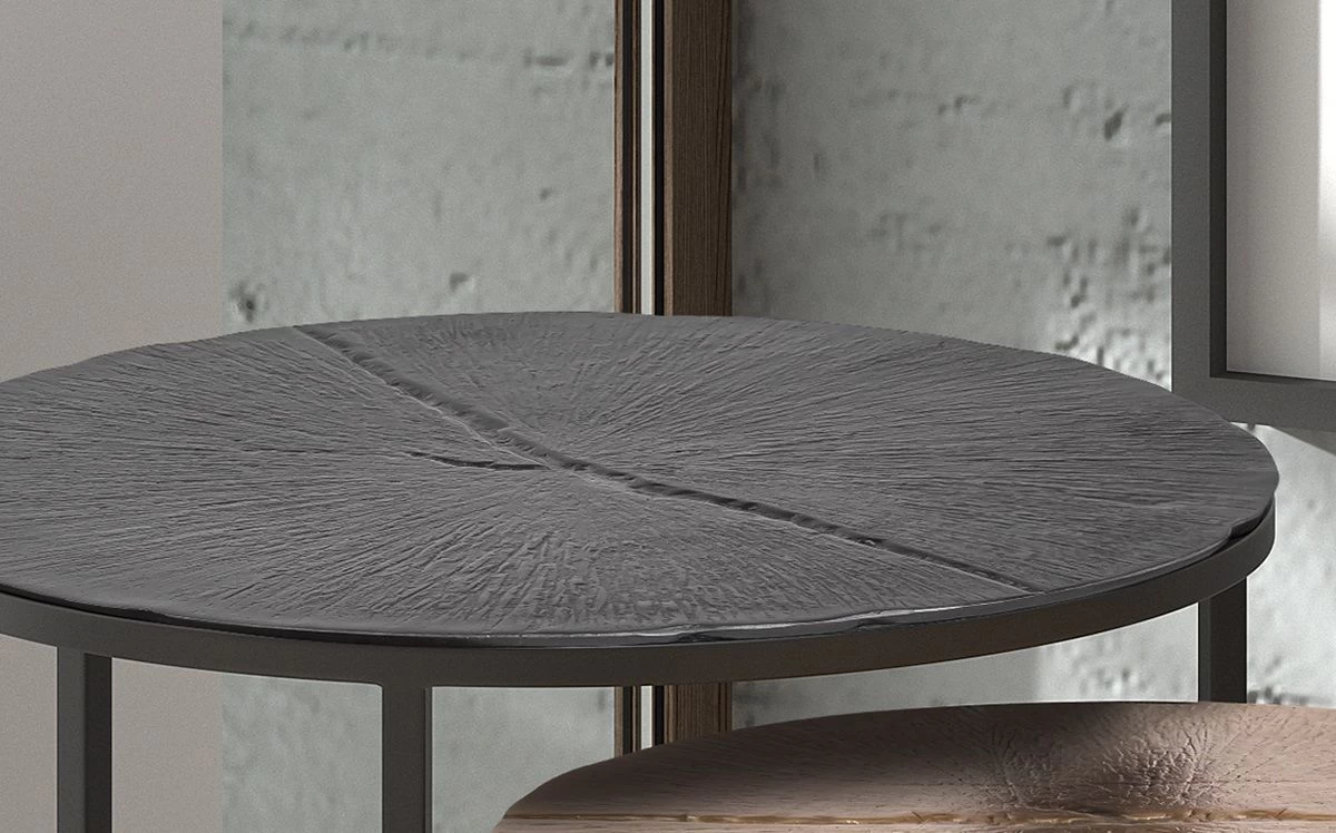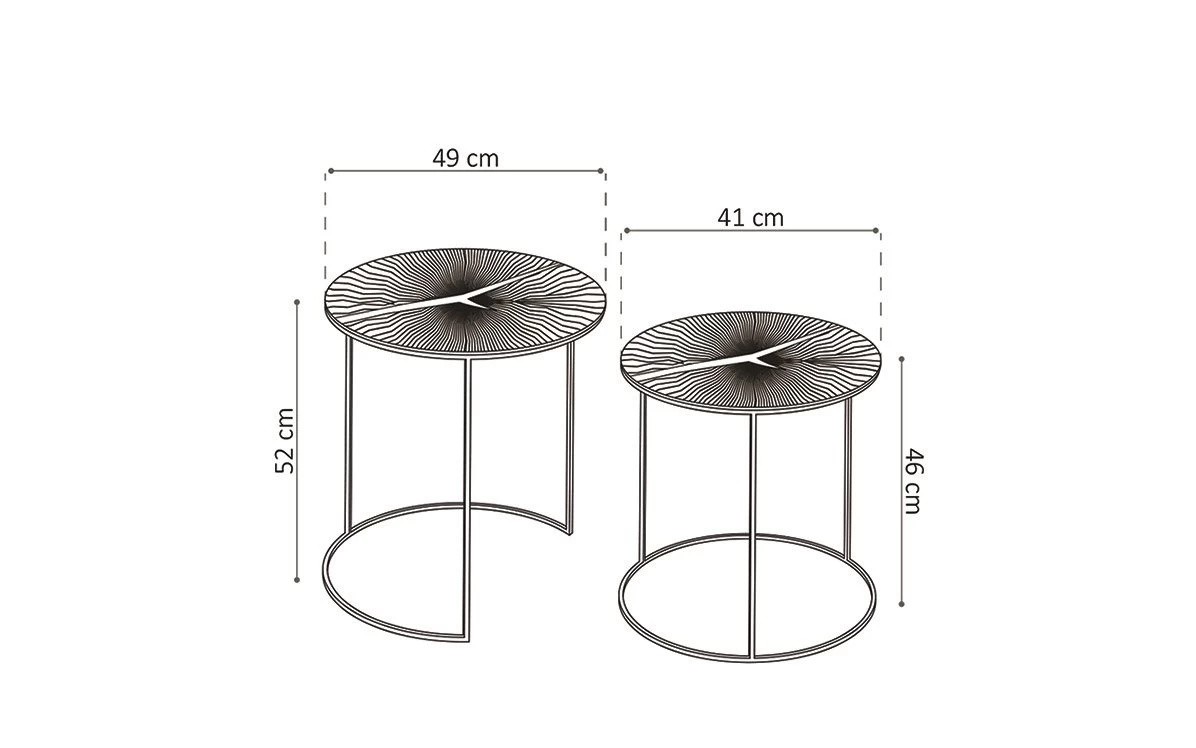 Deze ietwat abstractere set van 2 ronde bijzettafeltjes geeft je woonkamer gegarandeerd een speciaal kantje. De tafeltjes zijn gemaakt van zwart en bronskleurig metaal. Het tafelblad van deze set valt op door de unieke breuklijn. Ze kunnen zowel apart als samen een substantiële bijdrage leveren aan het enige karakter van je woonkamer.