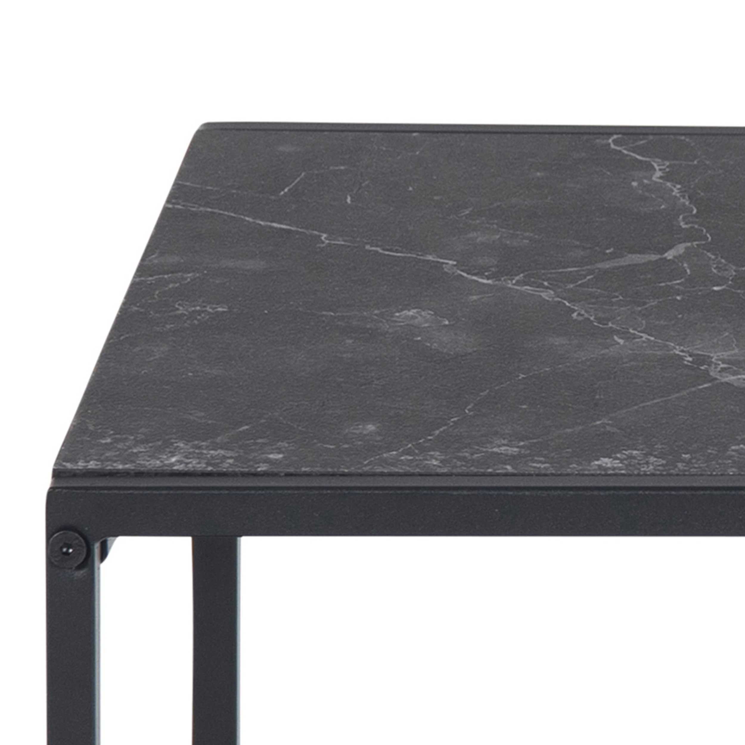 Set van 2 bijzettafeltjes Idris met tafelblad in marmerlook en matzwarte metalen poten.