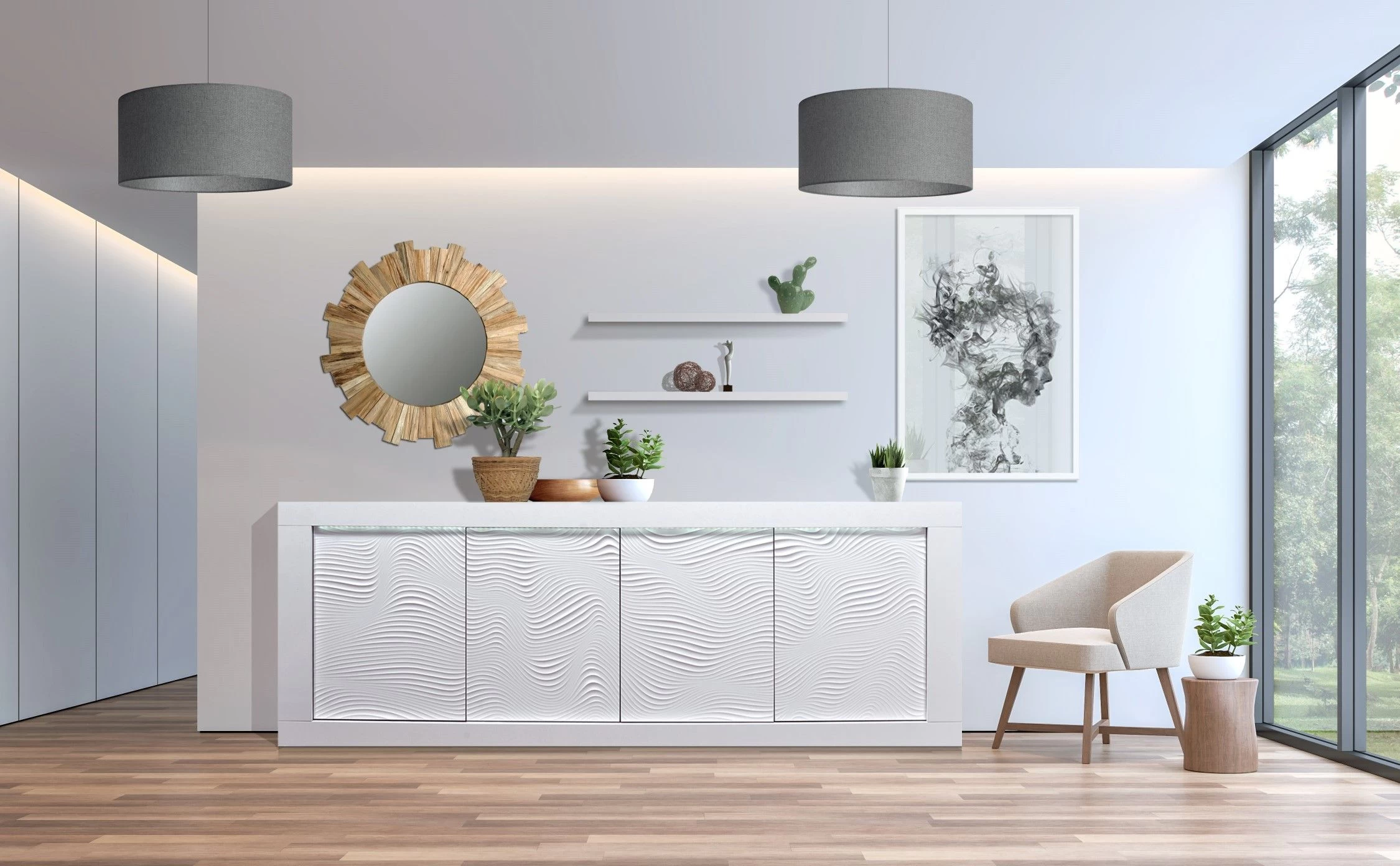 Maak jouw woon- of eetkamer helemaal af met enkele mooie foto’s of decoratie die je op deze 2 legplanken van de Kaia-collectie plaatst. De planken zijn 105 cm lang en zijn gemaakt van spaanplaat in hoogglans wit.