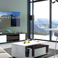 Deze Becky-reeks voor de woonkamer maakt indruk om voor de hand liggende redenen. De stevige kasten zijn uitgevoerd in een combinatie van bruin houtdecor en antracietkleurige omlijsting.