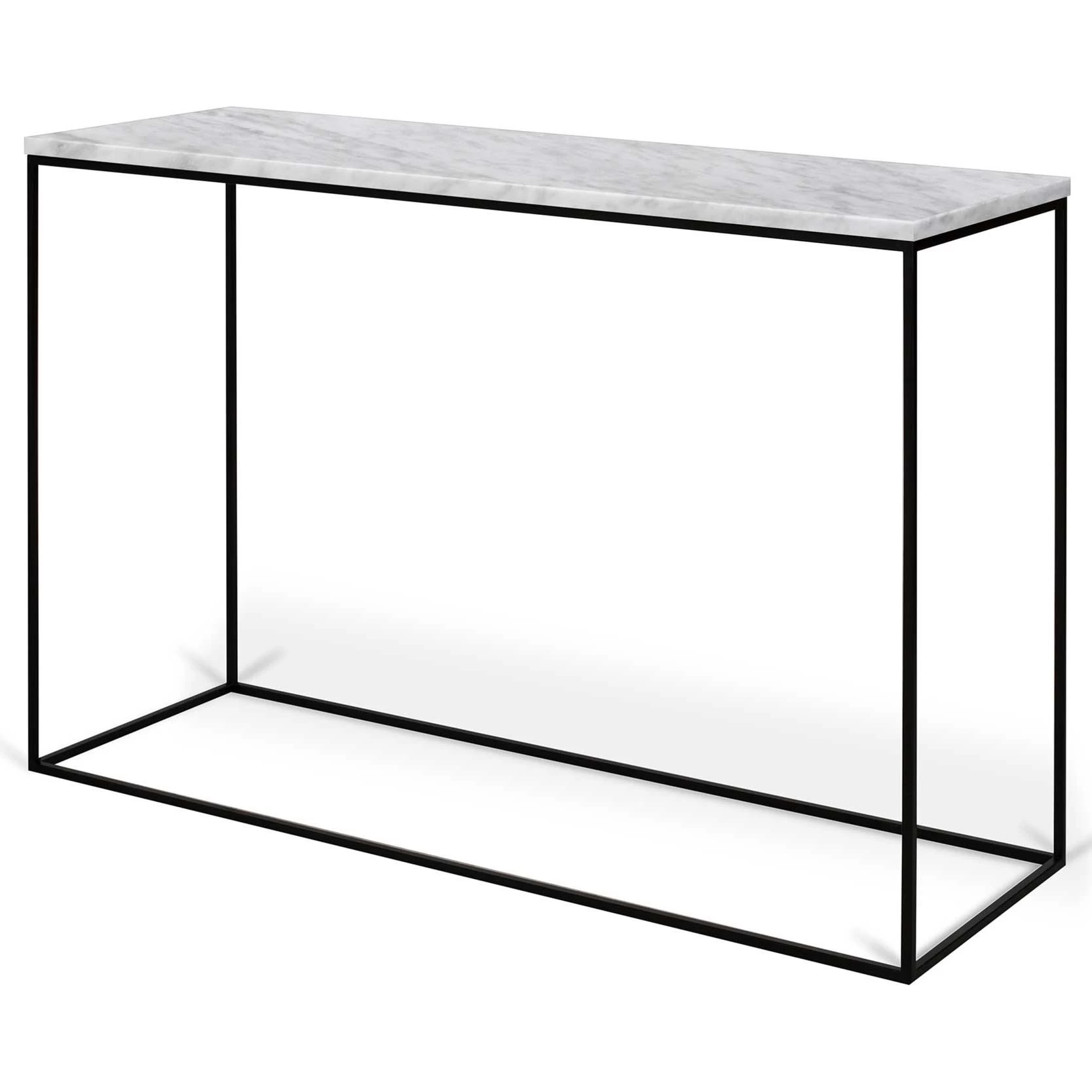 Sidetable Gleam met tafelblad van wit marmer en zwart stalen onderstel.