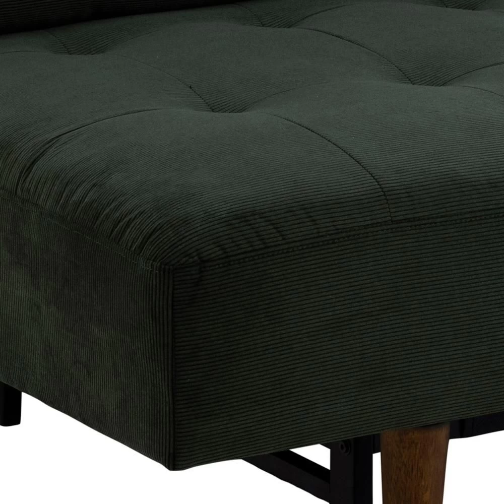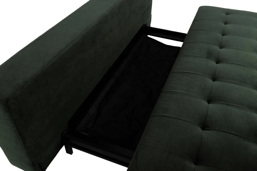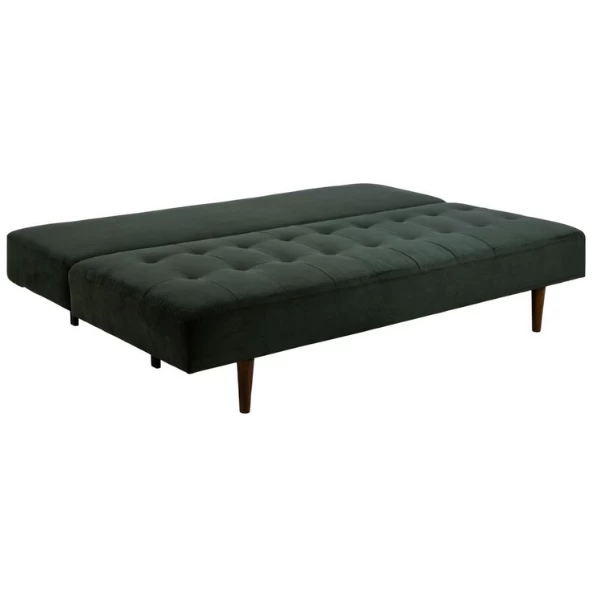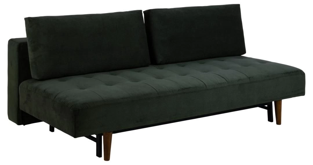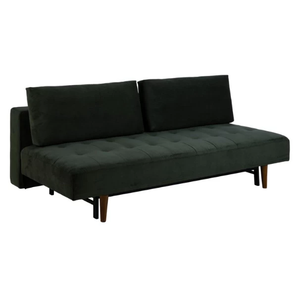 Geschikt voor de multifunctionele kamer of het kleine appartement is deze slaapbank niet alleen chique maar ook een veelzijdige oplossing. De slaapbank is gemakkelijk om te bouwen tot een bed en de pocketveren zorgen ervoor dat je overnachtende gasten in alle comfort slapen. Het zetelbed is uitgevoerd in donkergroene stof, met gebeitste poten.