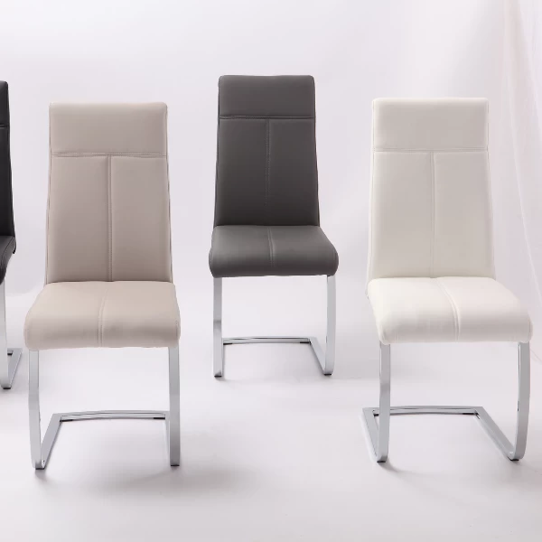 Deze stoelen zijn beschikbaar in het cappuccino, zwart, grijs en wit.