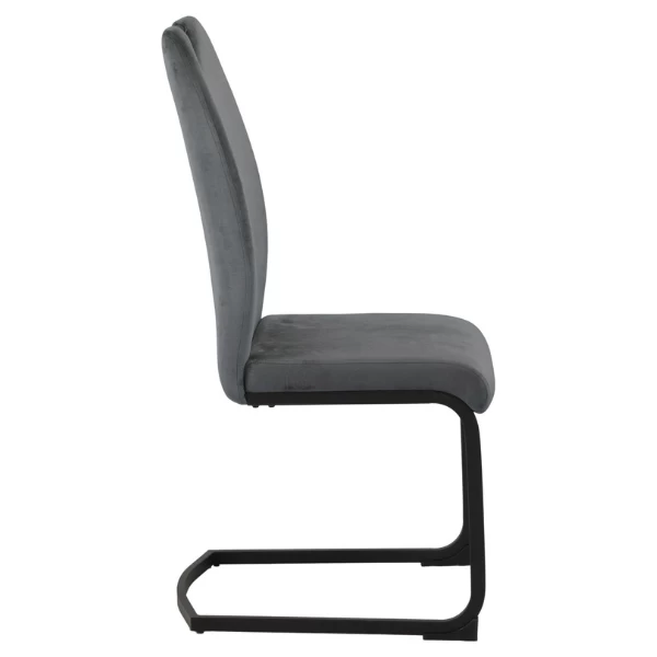 Schuif aan rond je eettafel en dineer in stijl en comfort. Deze veelzijdige eetkamerstoel met schommelonderstel brengt u comfort en stijl in één perfecte combinatie. Moet je die stof eens zien. Die is niet alleen zacht, maar geeft de stoel ook diepte en een levendige, rijke uitstraling. De stof is donkergrijs, terwijl het sledevormige onderstel werd gemaakt uit zwart gepoedercoat metaal.