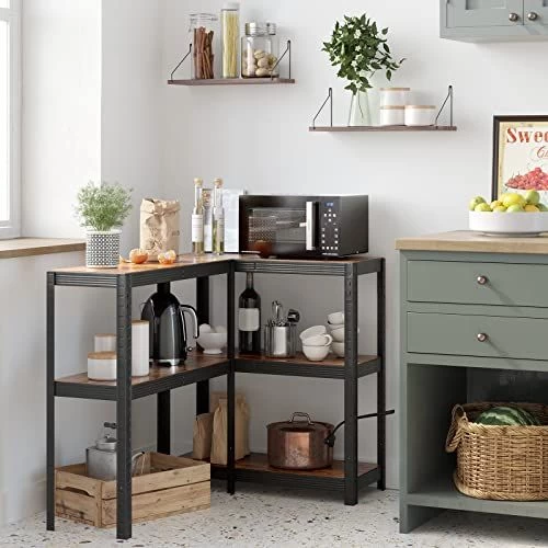 Stevig en stijlvol rek, draagvermogen van 130 kg per plank, verstelbare planken, eenvoudige montage met insteekverbindingen en rustiek bruin en zwart ontwerp. Inclusief anti-tip kit