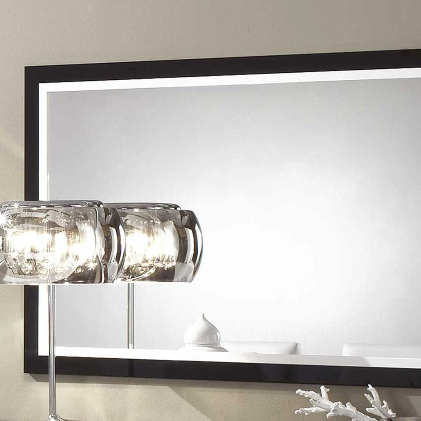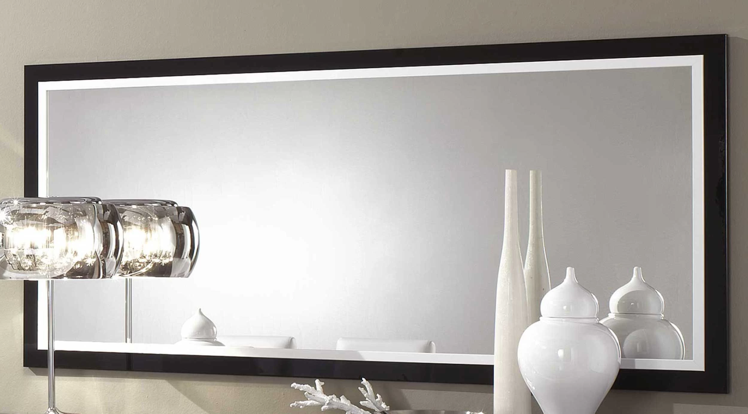 Deze spiegel is 140 cm lang en kan boven het bijpassende Roma dressoir gehangen worden. Ook verkrijgbaar in een groter formaat.