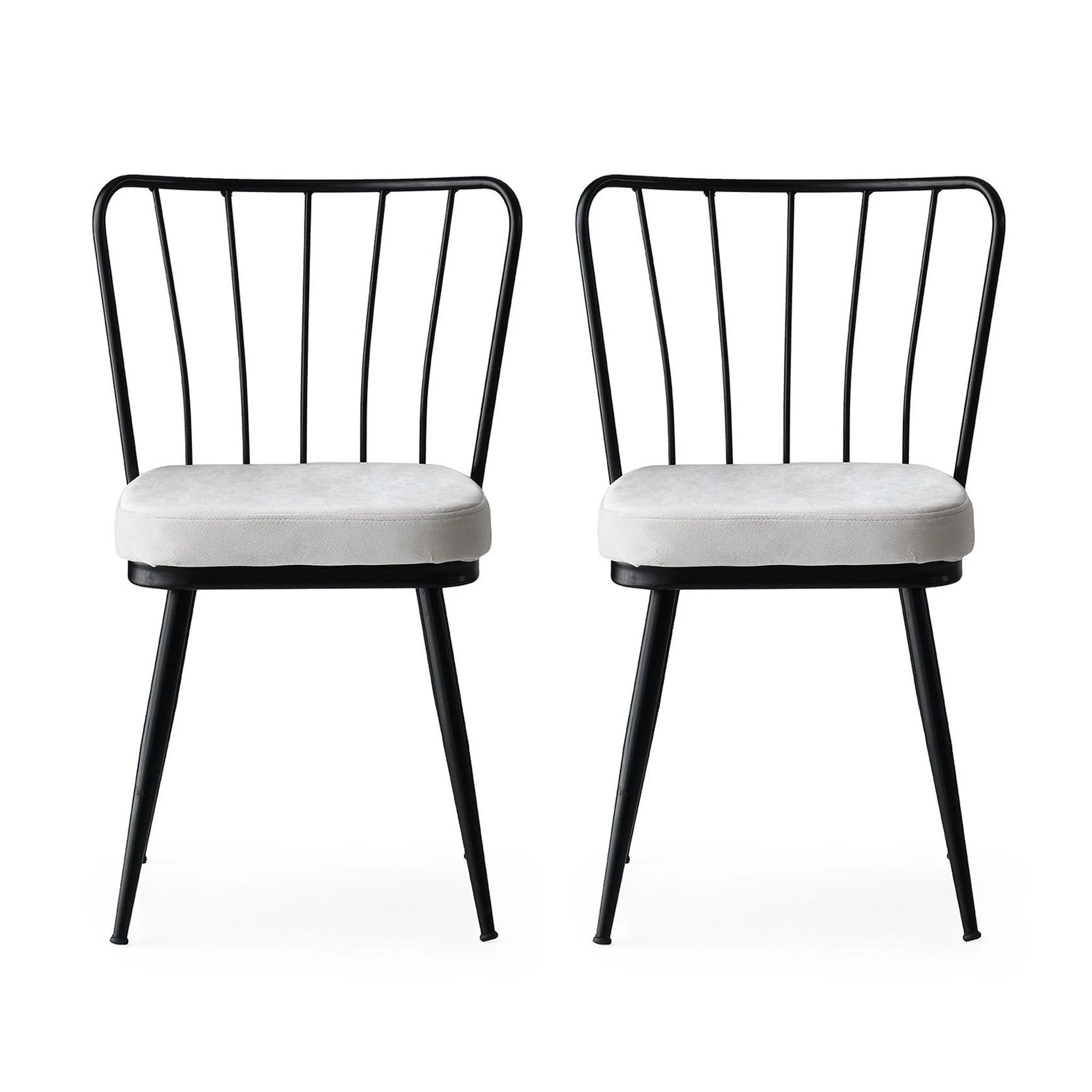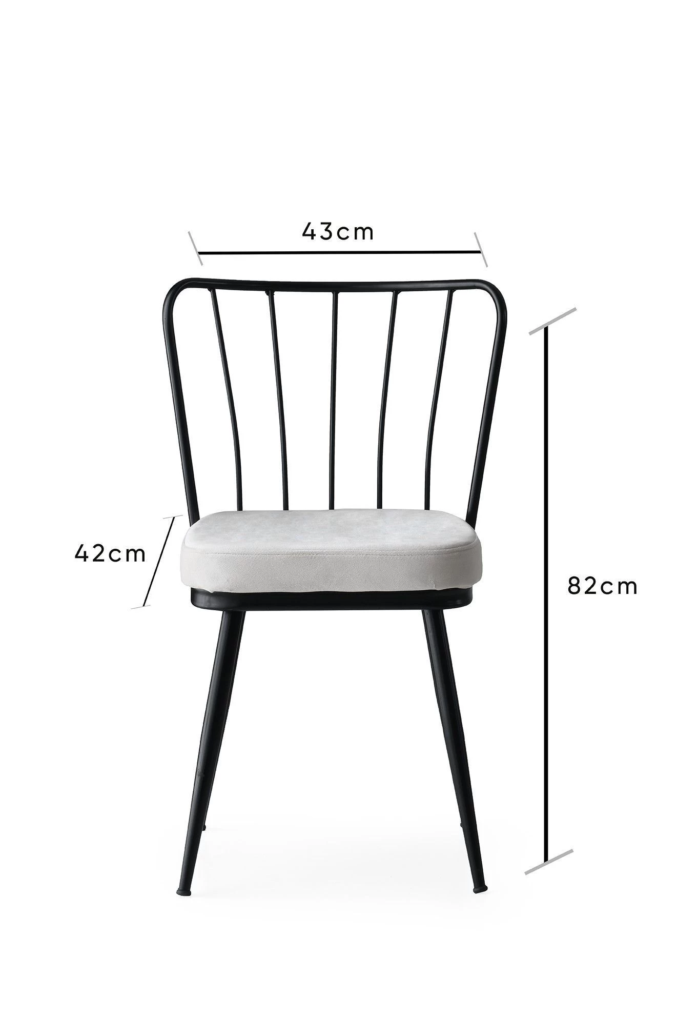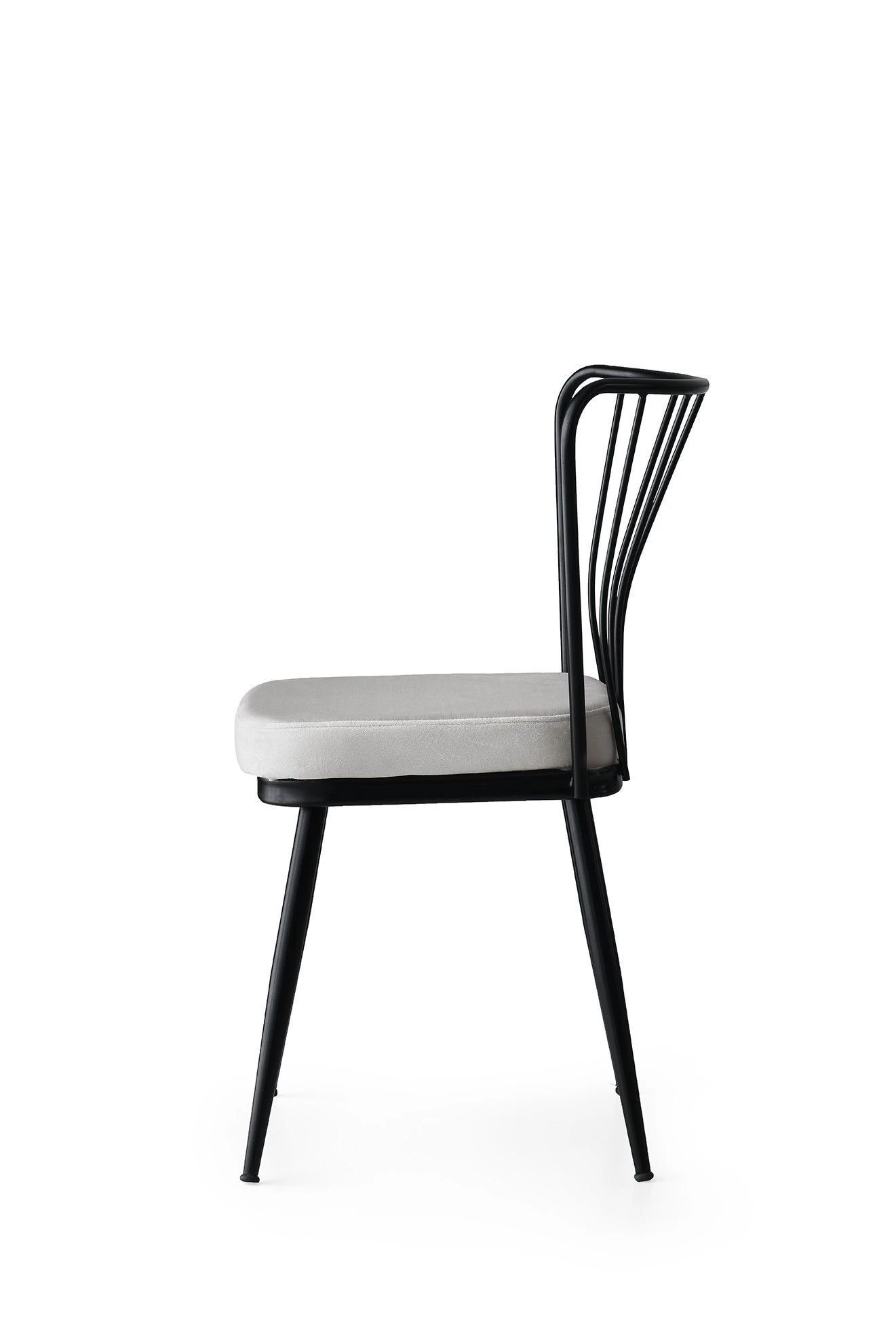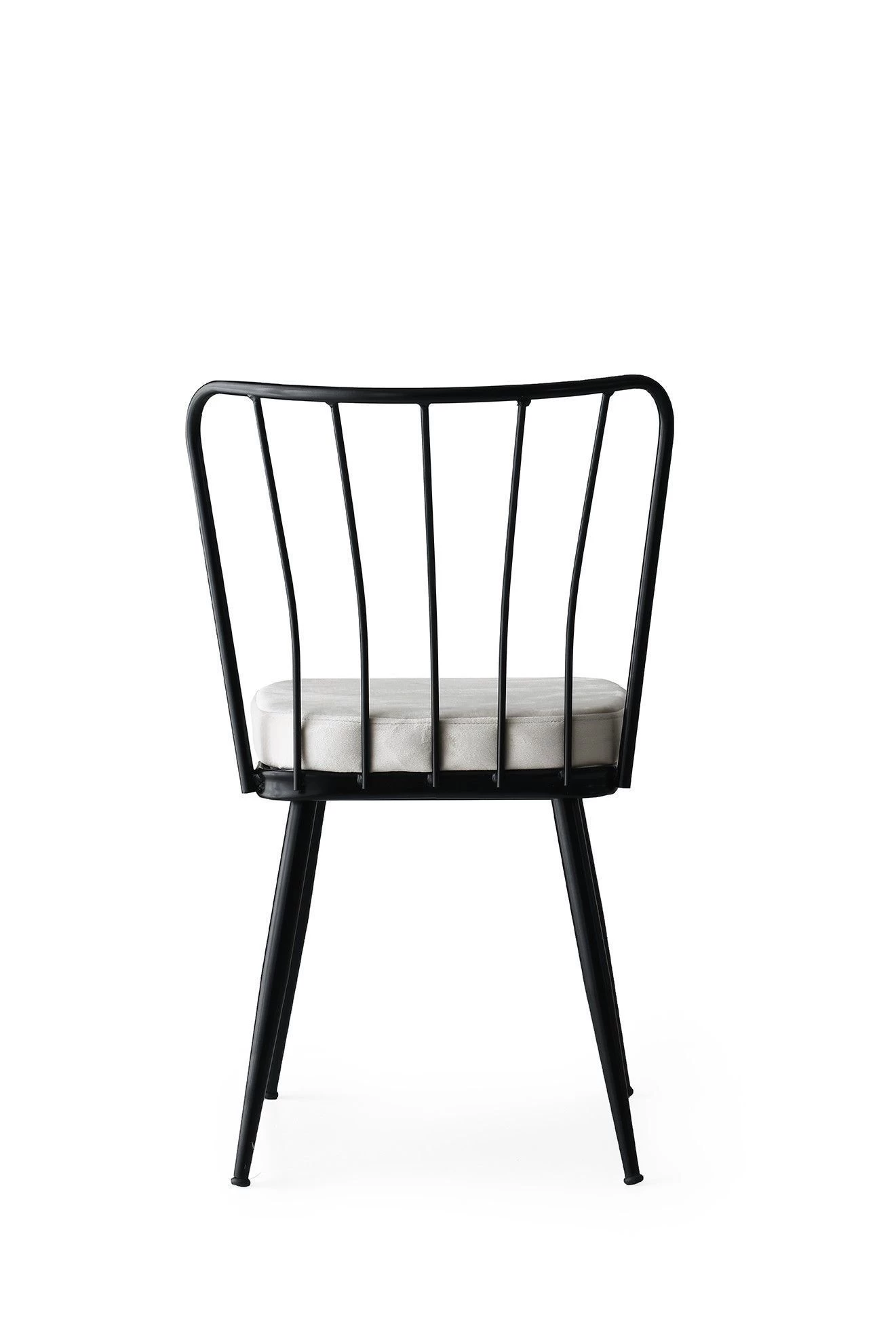 Stoelset (2 stuks) – Stijlvolle en comfortabele aanvulling op elk zitmeubel. Modern en uniek ontwerp. Frame: 100% metaal. Zitting: Fluwelen stof/melamine gecoate spaanplaat. Rugleuning: Metaal. Afmetingen: 43 cm breedte, 82 cm hoogte, 42 cm diepte. Zithoogte: 50 cm. Draagvermogen: 175 kg. Kleur: Zwart