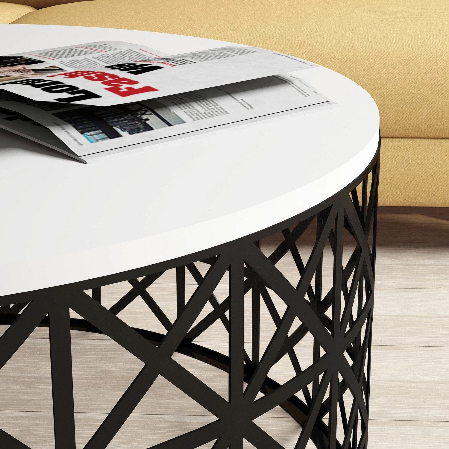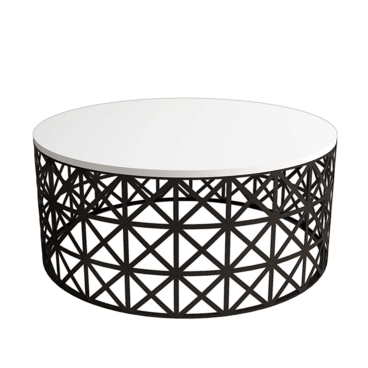 Woody Fashion Coffee Table is een stijlvolle en duurzame tafel gemaakt van 100% gemelamineerd spaanplaat met een strak wit en zwart kleurenschema. Hij heeft een dikte van 18 mm, een PVC-band van 1 mm en stevige smeedijzeren poten voor extra stabiliteit. De afmetingen zijn 90 cm breed, 90 cm hoog en 38 cm diep.