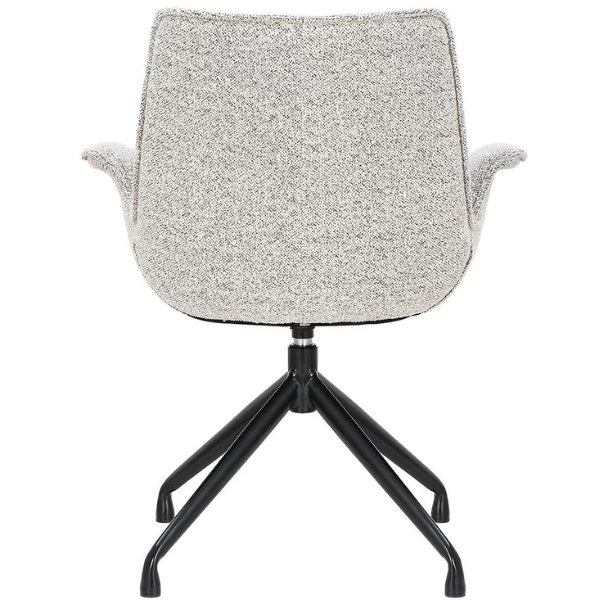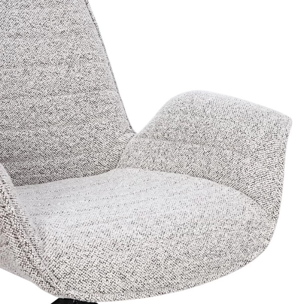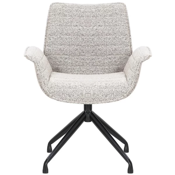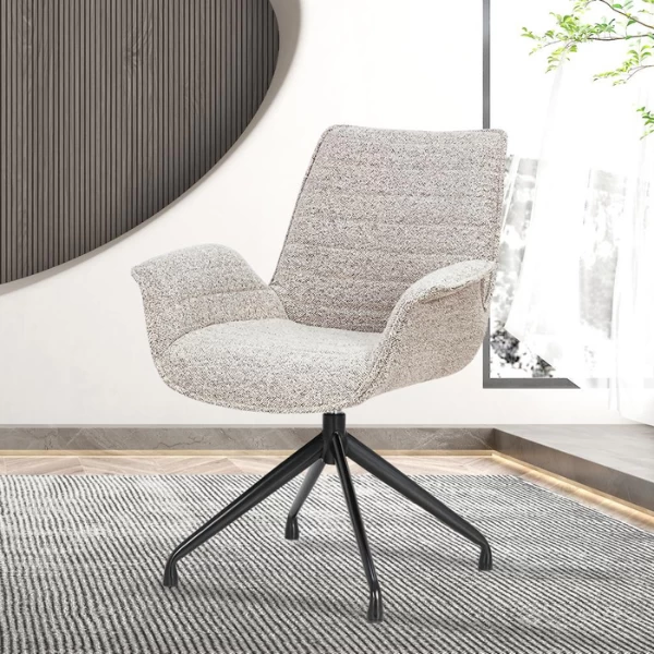 Stoel Amir heeft metalen poten en een Bouclé-bekleding in beige. De stoel is draaibaar.