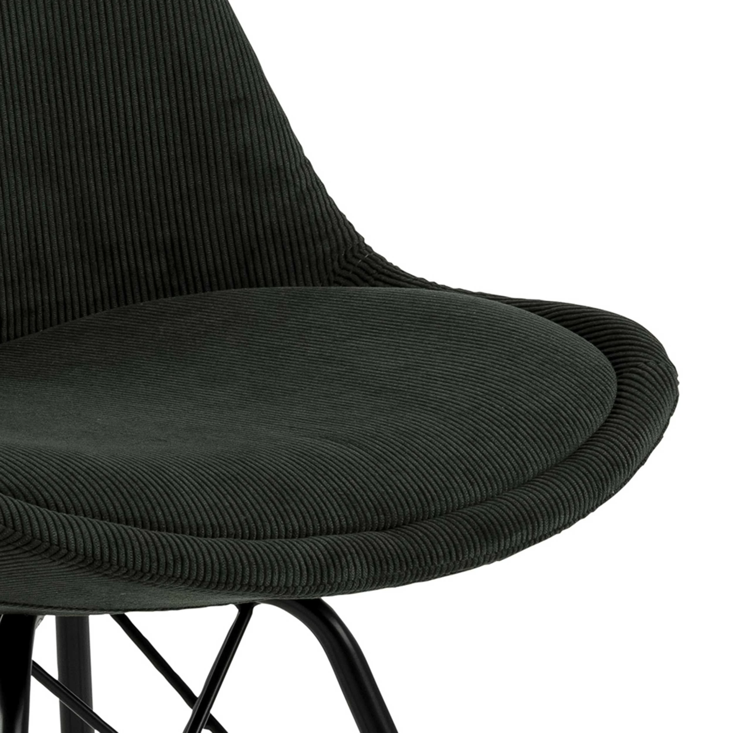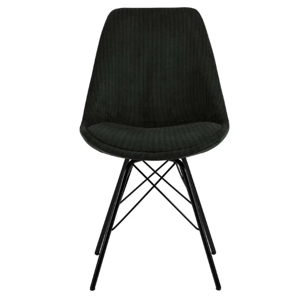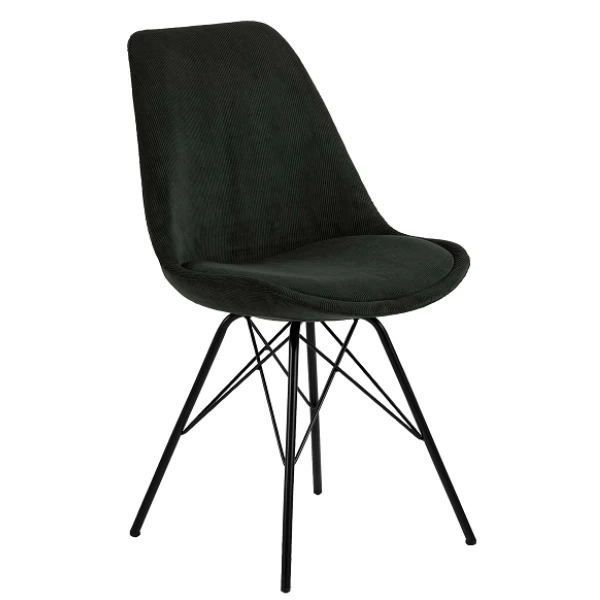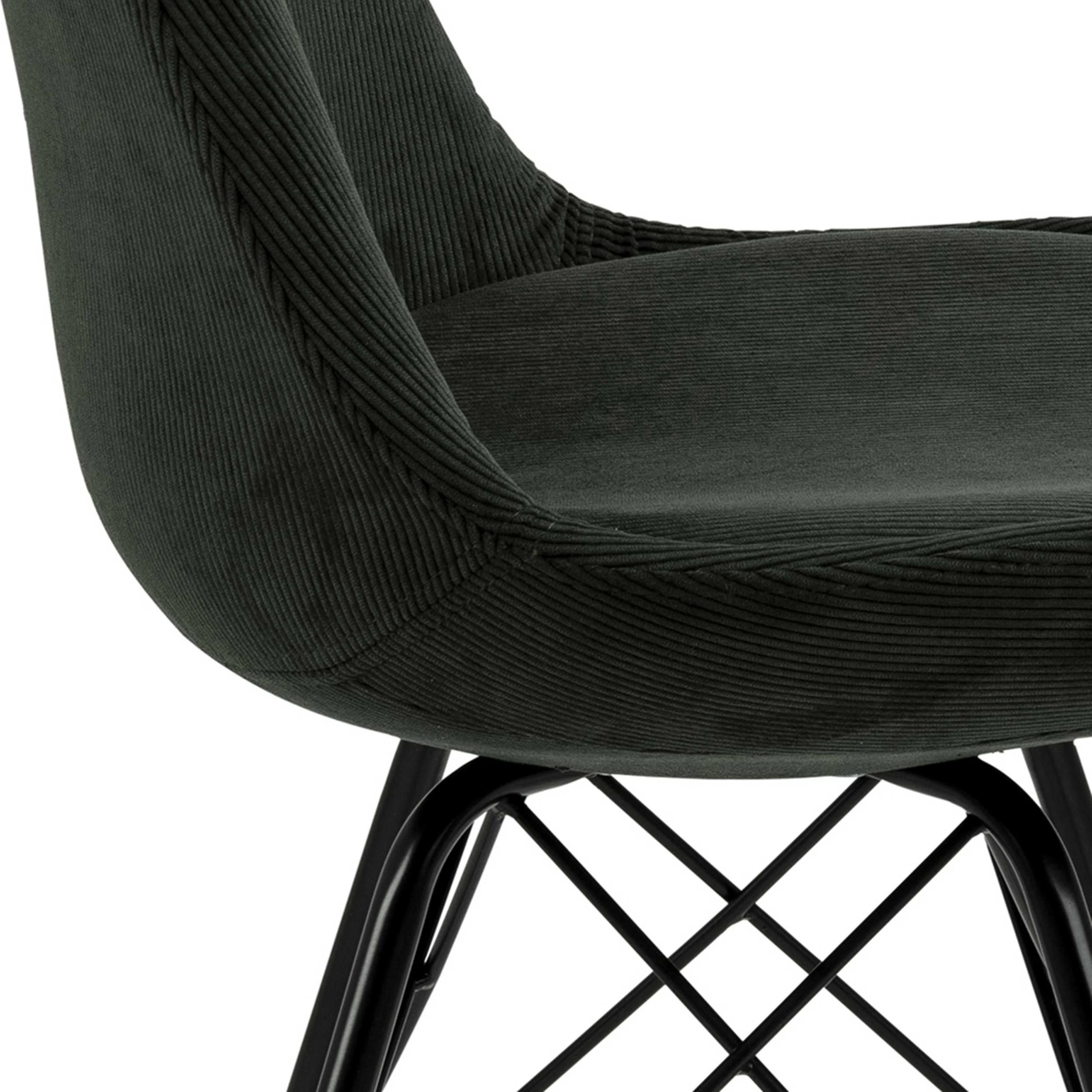 Stoel Erin met metalen poten en donkergroene geribde stof.