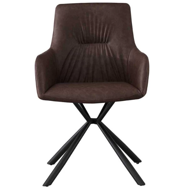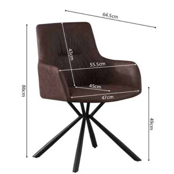 De ‘Lyra’ PU Bruine Stoel: Modern ontwerp met metalen poten en PU bekleding. H-H 86 x B-L 55,5 x D-P 64,5 cm. Comfortabel en stijlvol zitten.