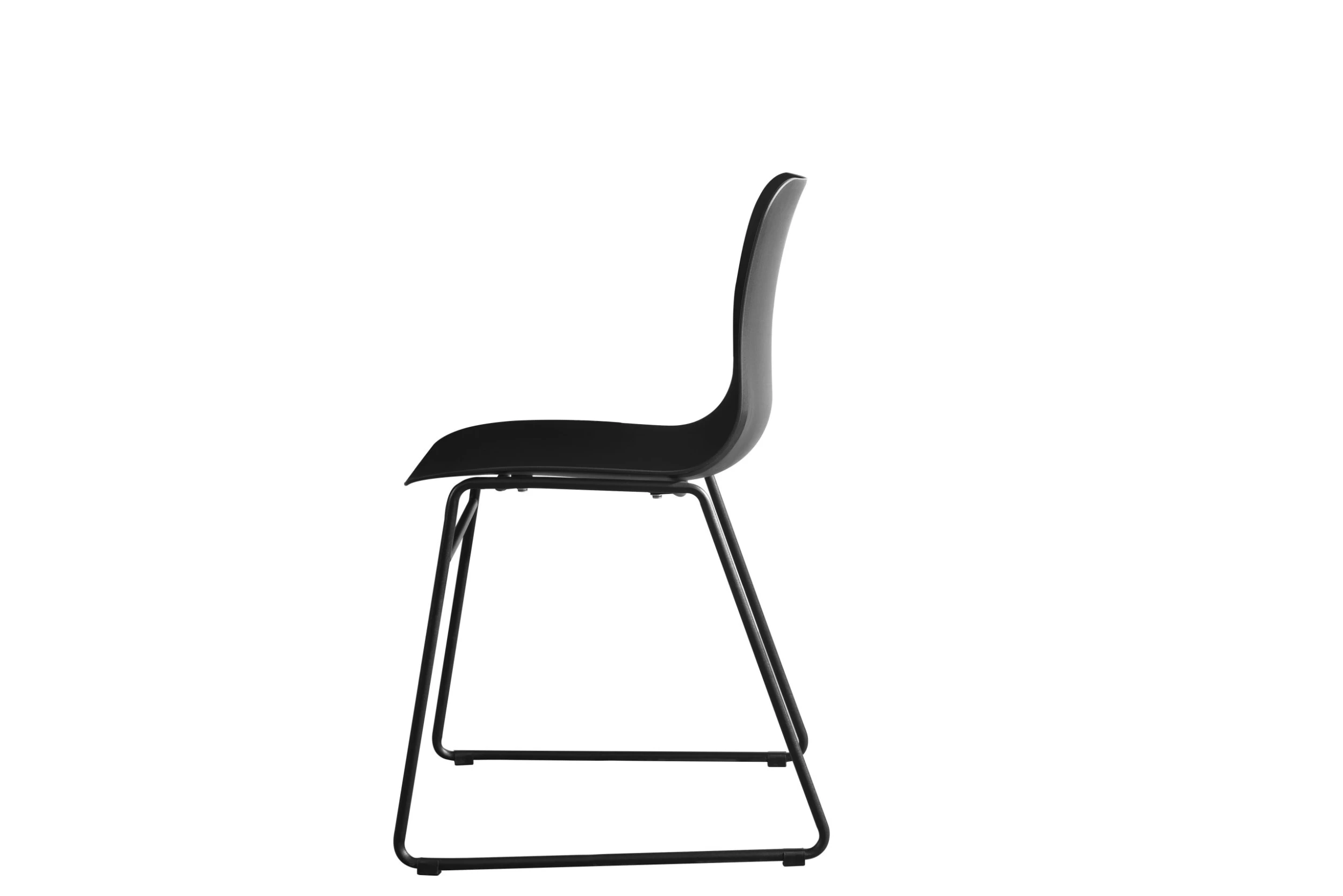 Met deze zwarte stoel kun je jouw keuken of eetkamer een industriële uitstraling geven. De zitting is gemaakt van kunststof en matcht mooi met het ranke metalen frame.