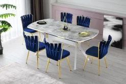 Stijlvolle 4-delige Stoelenset | Comfortabel En Modern | 100% Metalen Frame | Fluweel En Multiplex