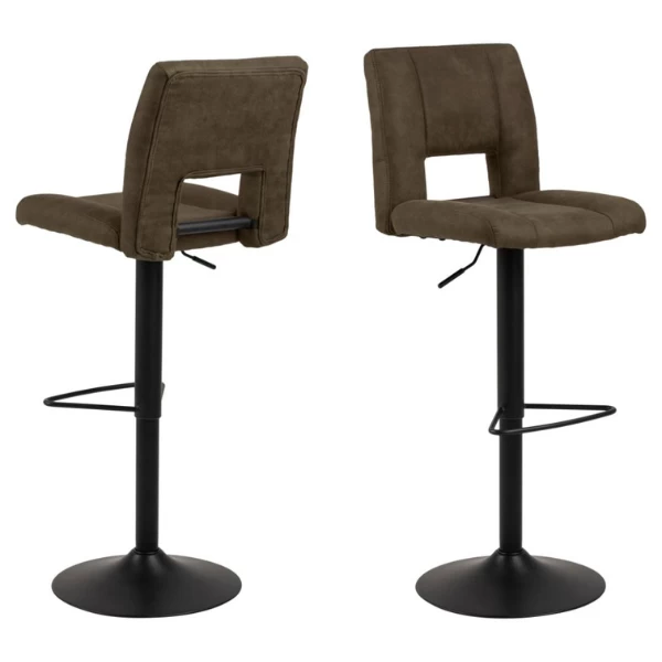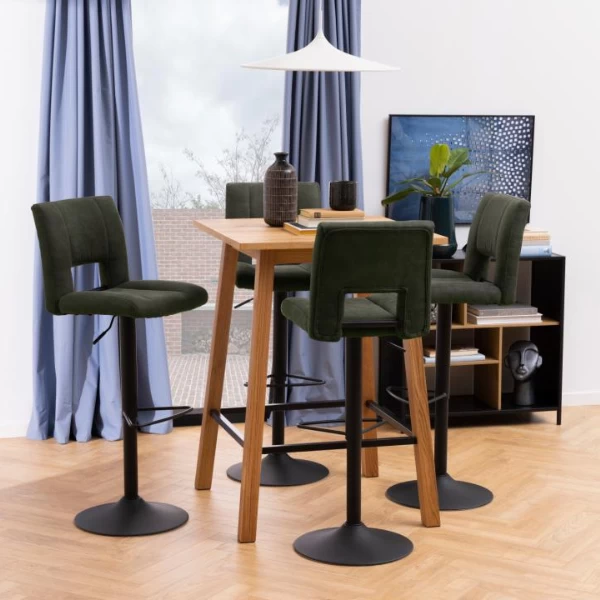 De Sylvia barkruk in Preston stof heeft een luxe olijfgroene kleur, perfect om een vleugje elegantie toe te voegen aan elke ruimte. Gemaakt met een stevig trompetonderstel van matzwart ruw gepoedercoat staal, garandeert deze kruk duurzaamheid en stabiliteit. Het gasveermechanisme zorgt voor een moeiteloze hoogteverstelling, waardoor gebruikers maximaal comfort genieten. Met een handige handgreep, draaifunctie en verticale stiksels biedt de Sylvia barkruk zowel stijl als functionaliteit. Verfraai je bar of keuken met deze chique en veelzijdige zitoptie.