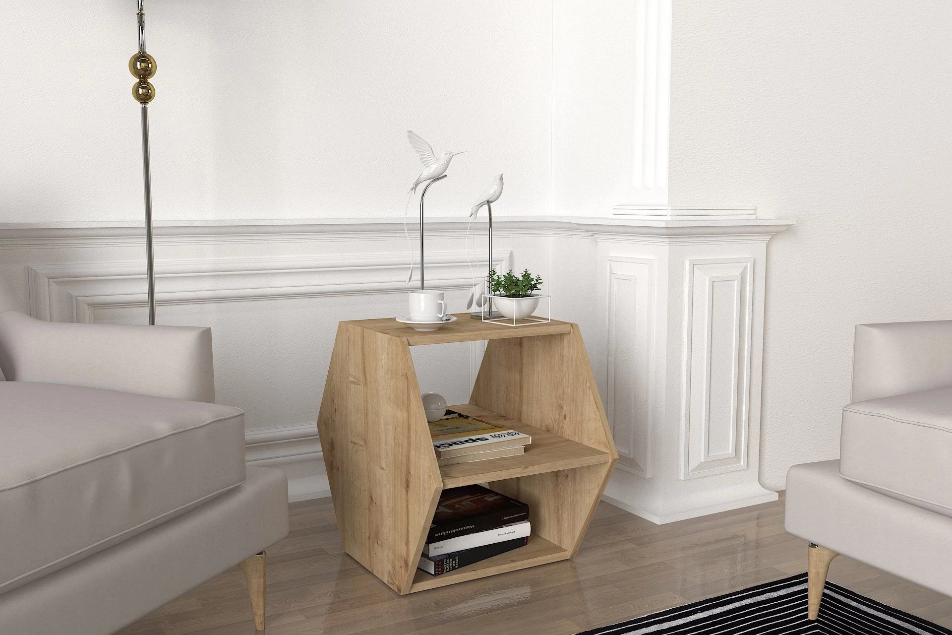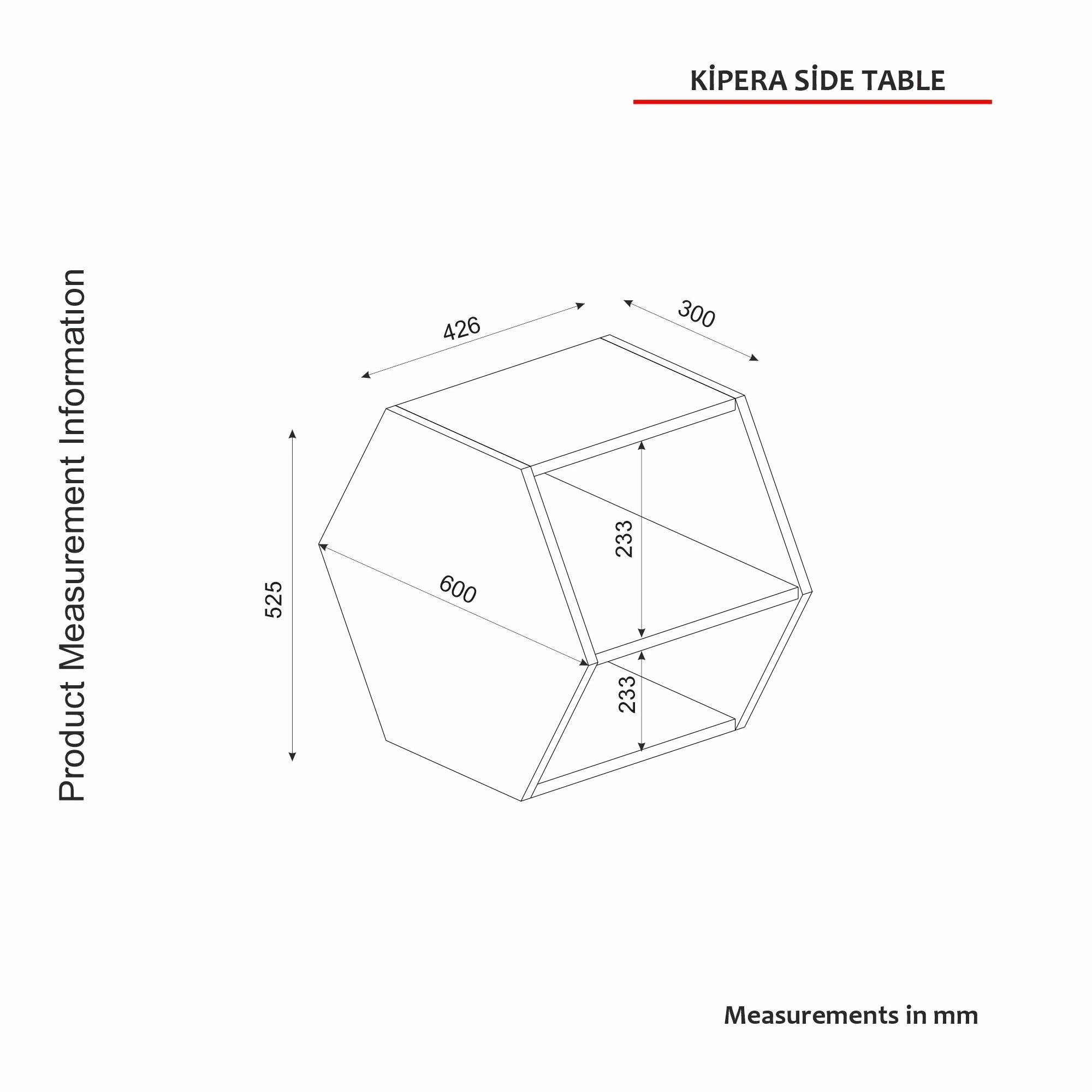 Tera Home bijzettafel is een 100% MELAMINE COATED PARTICLE BOARD met een dikte van 18mm. Het biedt extra opbergruimte en wordt geleverd in de kleur Oak Black, met een breedte van 42 mm.