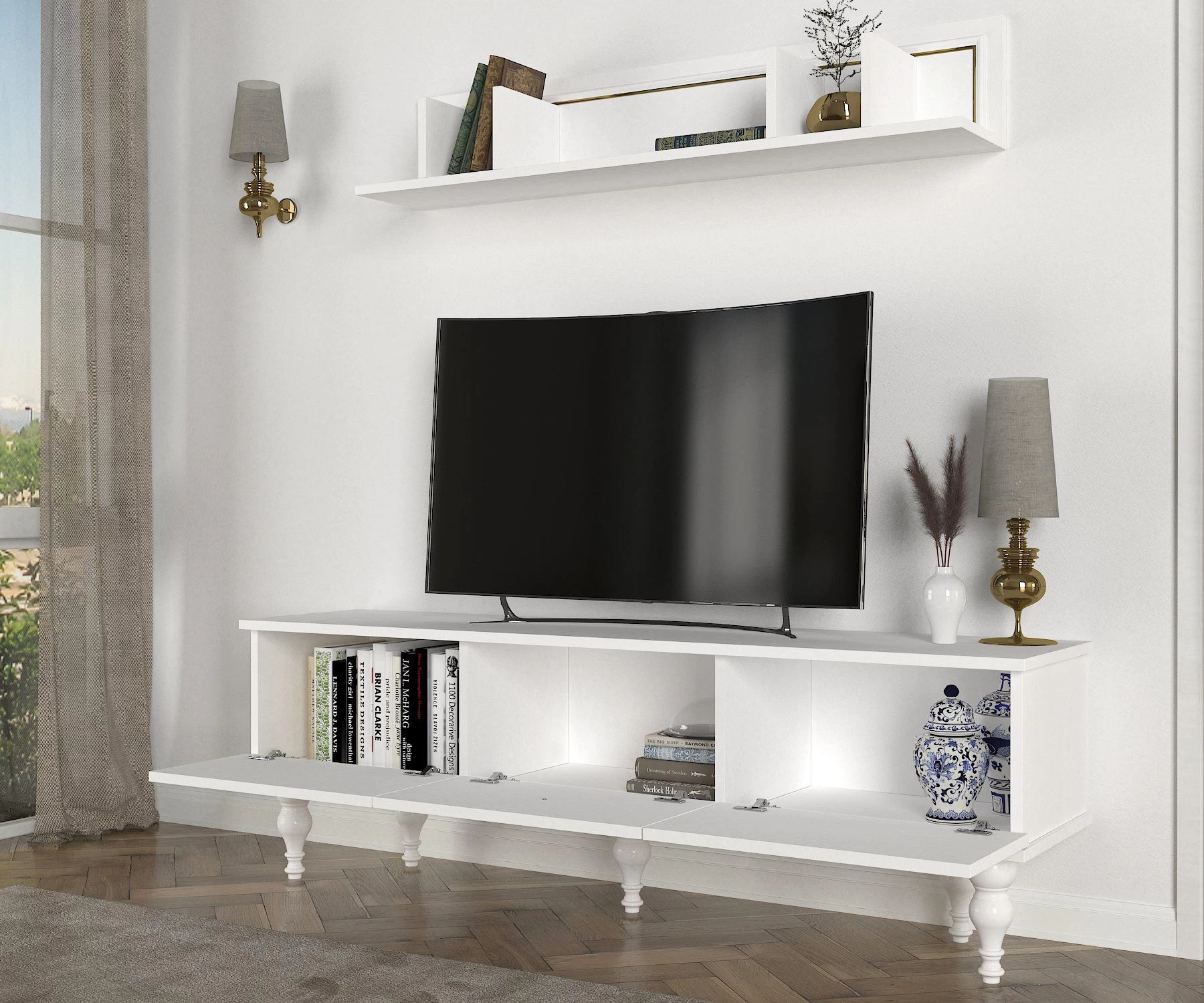 Naast de esthetische aantrekkingskracht biedt het Tera Home TV-meubel ook talloze voordelen op het gebied van functionaliteit. Met voldoende opbergruimte kunt u uw media-apparatuur, dvd’s en andere accessoires gemakkelijk georganiseerd en binnen handbereik houden. De open planken zijn perfect voor het uitstallen van decoratieve items of het opbergen van je favoriete boeken, waardoor dit TV-meubel een veelzijdige aanvulling is voor elke kamer.