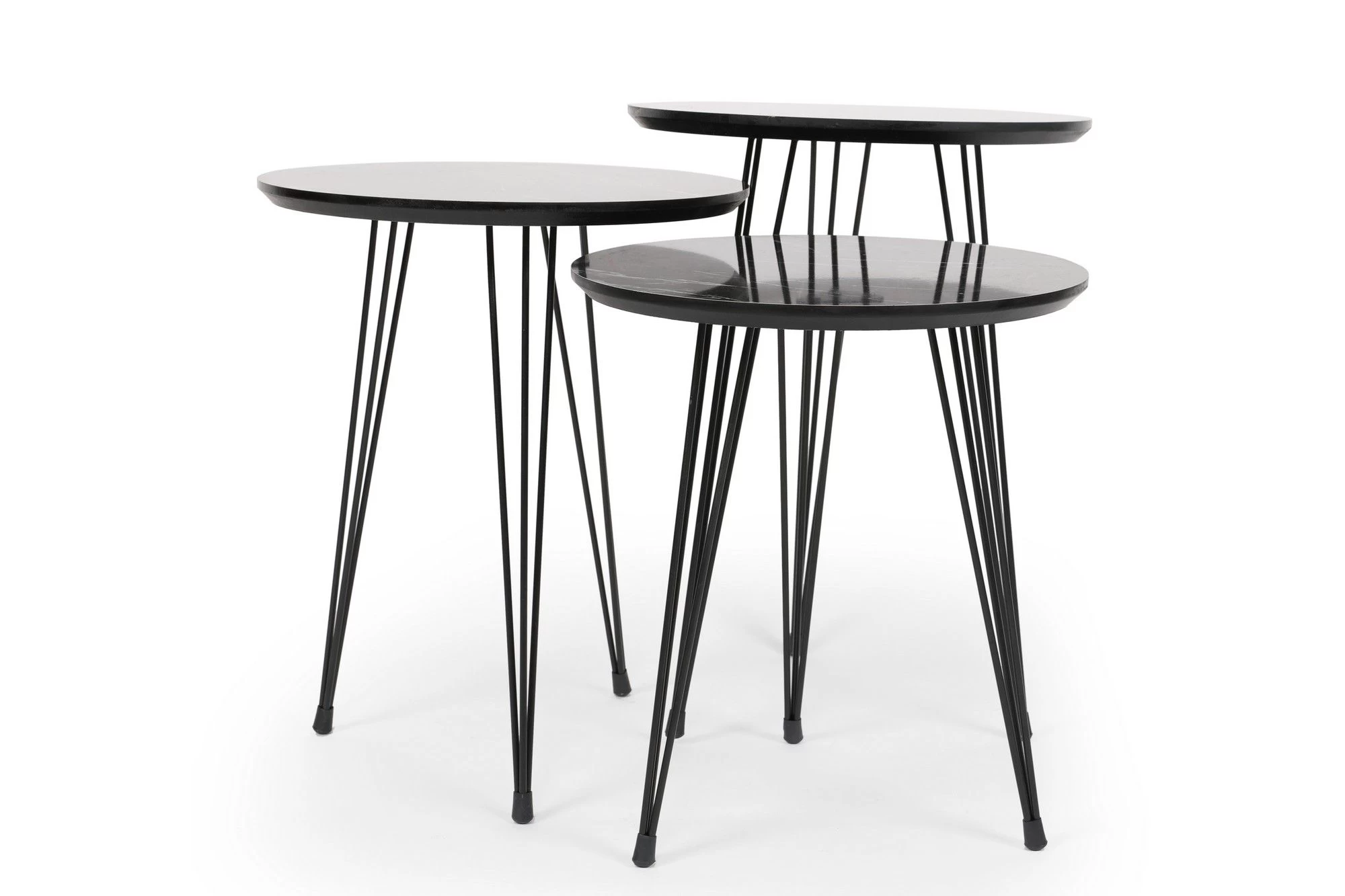 Voeg stijl en opbergruimte toe aan je kamer met deze elegante nesttafelset. De 3-delige set is gemaakt van 100% MDF en metalen poten en wordt geleverd in een strakke grijszwarte kleur.