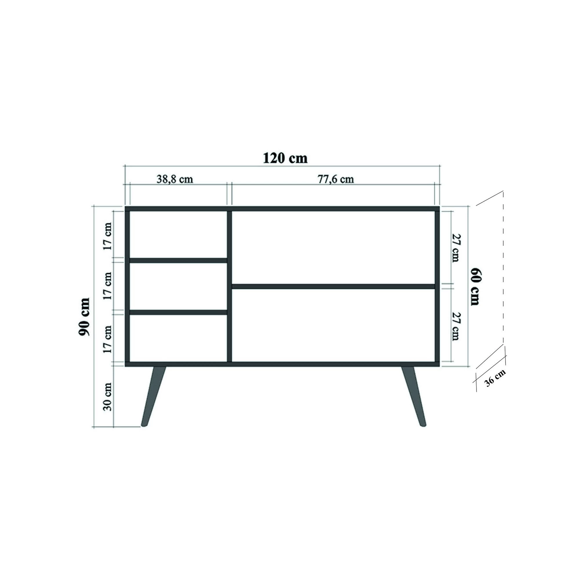 De Vella Console is een prachtige aanvulling voor elk huis of kantoor. Gemaakt van hoogwaardige materialen en ontworpen voor zowel stijl als functionaliteit, zal deze console het uiterlijk van elke kamer verbeteren.Een van de belangrijkste kenmerken van de Vella Console is de constructie van 100% gemelamineerd spaanplaat. Dit zorgt niet alleen voor duurzaamheid en een lange levensduur, maar geeft het ook een strak en modern uiterlijk. De melamine coating voegt een laag bescherming toe tegen krassen, vlekken en hitte, waardoor het perfect is voor dagelijks gebruik.Met een dikte van 18 mm is de Vella Console gebouwd om zware items te weerstaan en biedt het een stevige basis voor je spullen. Met zijn poten van haagbeuk biedt deze console uitstekende stabiliteit en ondersteuning, zodat hij niet wiebelt of gemakkelijk omvalt.De metalen en touw handgrepen van de Vella Console voegen een vleugje elegantie en uniciteit toe aan het ontwerp. Deze handgrepen zijn niet alleen stijlvol maar ook praktisch, zodat de laden en planken gemakkelijk geopend en gesloten kunnen worden.De UV-coating die op de Vella Console is aangebracht, biedt een extra beschermingslaag tegen verbleken en verkleuren door blootstelling aan zonlicht. Met een breedte van 120 cm, een hoogte van 90 cm en een diepte van 36 cm biedt de Vella Console voldoende ruimte voor opslag en display. De rechter plank, met een breedte van 77 cm, biedt genoeg ruimte voor boeken, decoratieve items of iets anders dat je wilt laten zien.De sonoma eiken kleur van de Vella Console voegt warmte en verfijning toe aan elke ruimte. Het is een veelzijdige kleur die goed past bij een verscheidenheid aan interieurstijlen, waardoor het gemakkelijk te combineren is met je bestaande meubels en inrichting.Kortom, de Vella Console is een must-have voor degenen die waarde hechten aan kwaliteit, stijl en functionaliteit. Met zijn 100% melamine gecoate spaanplaat constructie, haagbeuk poten, metalen en touw handgrepen, UV-coating en ruime afmetingen, biedt deze console top kenmerken en voordelen. Voeg de Vella Console toe aan je interieur om de esthetiek te verhogen en jarenlang te genieten van het praktische gebruik.