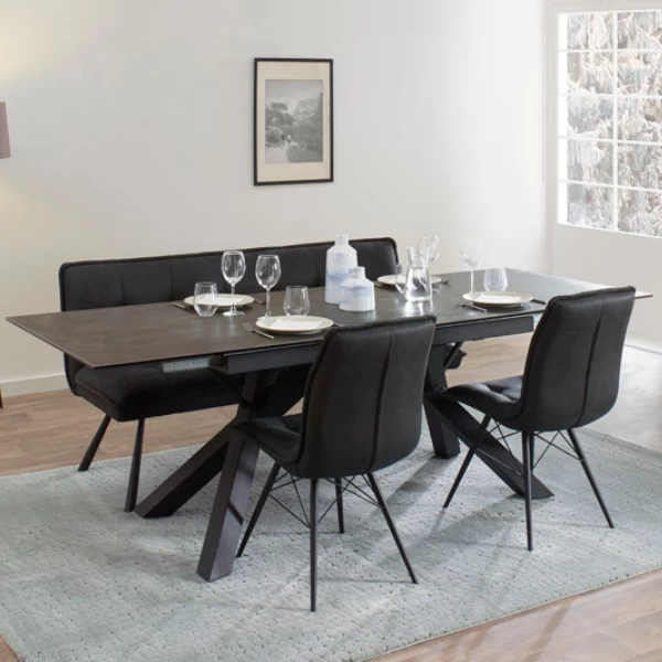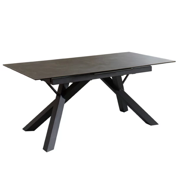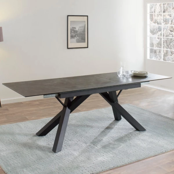 Eettafel Kerry 180x90x76cm met een tafelblad uit keramiek en zwarte metalen poten. Verlengbaar tot 230cm.