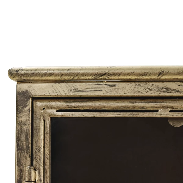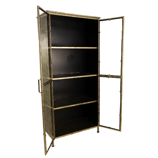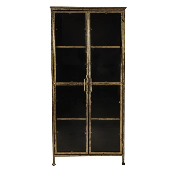 Vitrinekast Fletcher 80x40x180cm in ijzer met deuren in veiligheidsglas. Met 3 legplanken. Afwerking in antiek messing.ย